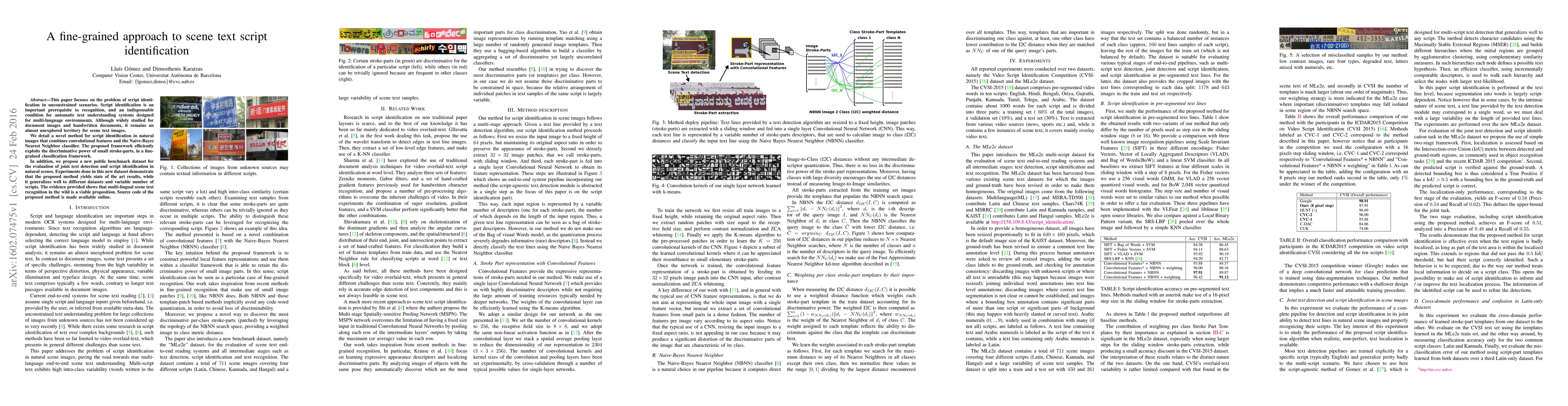 This paper focuses on the problem of script identification in unconstrained scenarios. Script identification is an important prerequisite to recognition, and an indispensable condition for automatic text understanding systems designed for multi-language environments. Although widely studied for document images and handwritten documents, it remains an almost unexplored territory for scene text images. We detail a novel method for script identification in natural images that combines convolutional features and the Naive-Bayes Nearest Neighbor classifier. The proposed framework efficiently exploits the discriminative power of small stroke-parts, in a fine-grained classification framework. In addition, we propose a new public benchmark dataset for the evaluation of joint text detection and script identification in natural scenes. Experiments done in this new dataset demonstrate that the proposed method yields state of the art results, while it generalizes well to different datasets and variable number of scripts. The evidence provided shows that multi-lingual scene text recognition in the wild is a viable proposition. Source code of the proposed method is made available online.