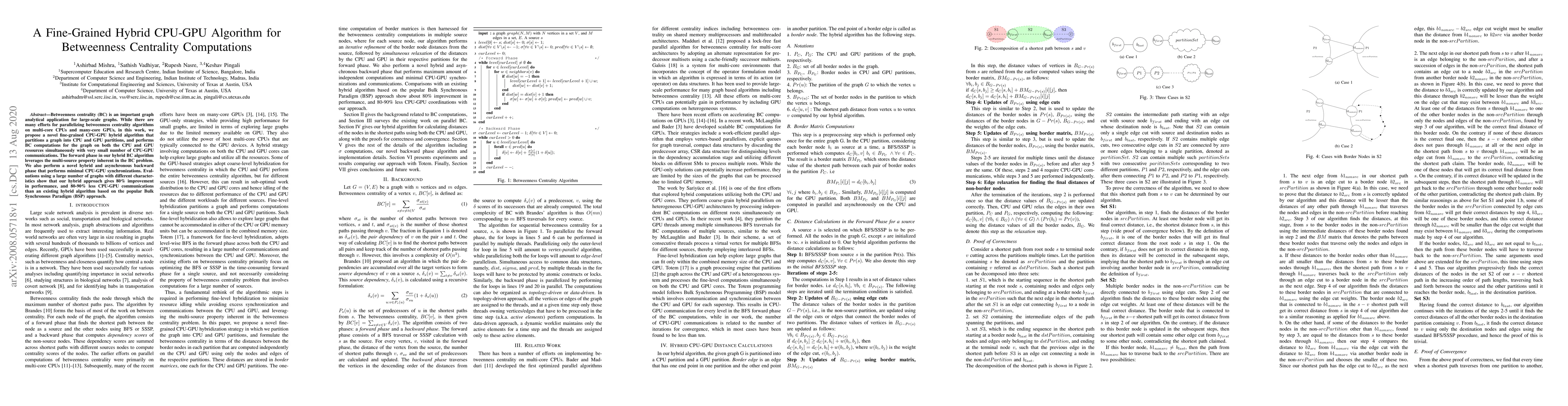 The paper presents a novel fine-grained hybrid CPU-GPU algorithm for betweenness centrality computations, along with an efficient asynchronous and hybrid backward phase minimizing CPU-GPU communications.
