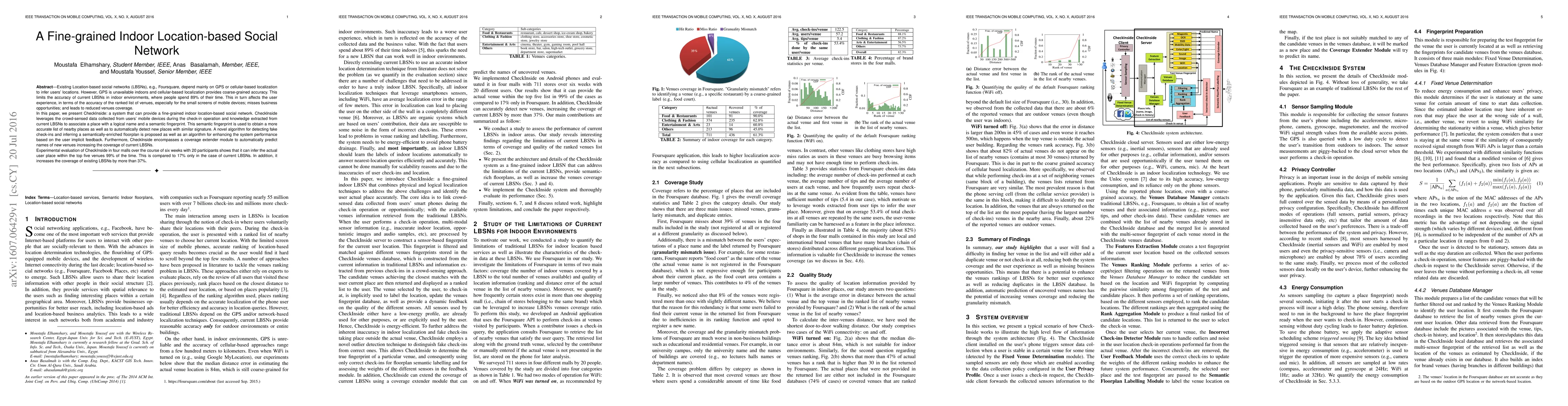 A new system called CheckInside provides a fine-grained indoor location-based social network by leveraging crowd-sensed data and semantic fingerprints to improve accuracy and coverage of existing Location-based Social Networks.
