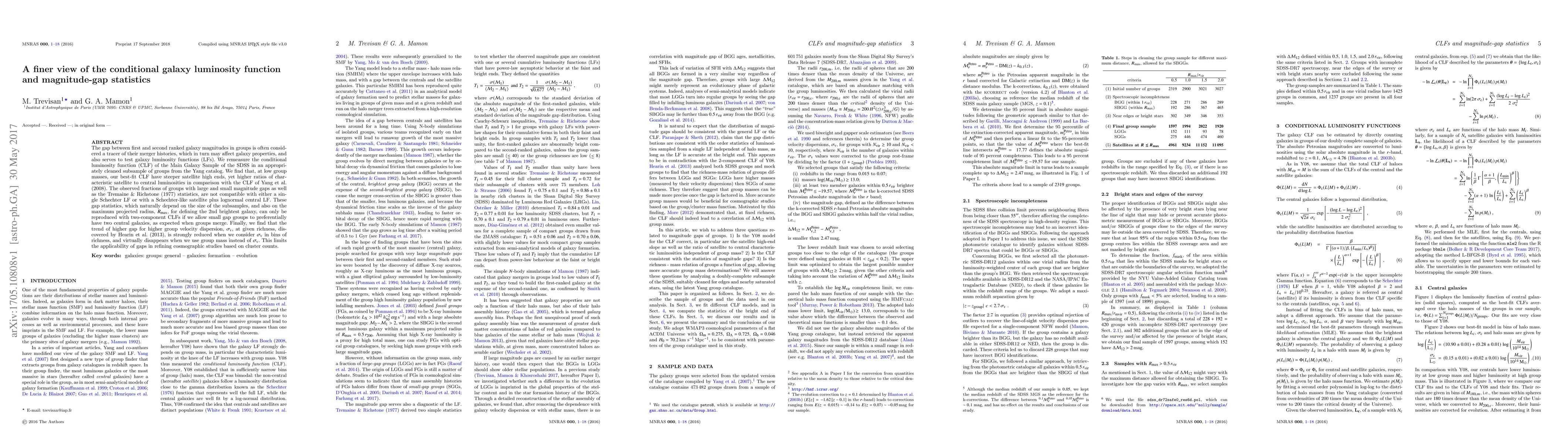 The gap between first and second ranked galaxy magnitudes in groups is often considered a tracer of their merger histories, which in turn may affect galaxy properties, and also serves to test galaxy luminosity functions (LFs). We remeasure the conditional luminosity function (CLF) of the Main Galaxy Sample of the SDSS in an appropriately cleaned subsample of groups from the Yang catalog. We find that, at low group masses, our best-fit CLF have steeper satellite high ends, yet higher ratios of characteristic satellite to central luminosities in comparison with the CLF of Yang et al. (2008). The observed fractions of groups with large and small magnitude gaps as well as the Tremaine & Richstone (1977) statistics, are not compatible with either a single Schechter LF or with a Schechter-like satellite plus lognormal central LF. These gap statistics, which naturally depend on the size of the subsamples, and also on the maximum projected radius, $R_{\rm max}$, for defining the 2nd brightest galaxy, can only be reproduced with two-component CLFs if we allow small gap groups to preferentially have two central galaxies, as expected when groups merge. Finally, we find that the trend of higher gap for higher group velocity dispersion, $\sigma_{\rm v}$, at given richness, discovered by Hearin et al. (2013), is strongly reduced when we consider $\sigma_{\rm v}$ in bins of richness, and virtually disappears when we use group mass instead of $\sigma_{\rm v}$. This limits the applicability of gaps in refining cosmographic studies based on cluster counts.