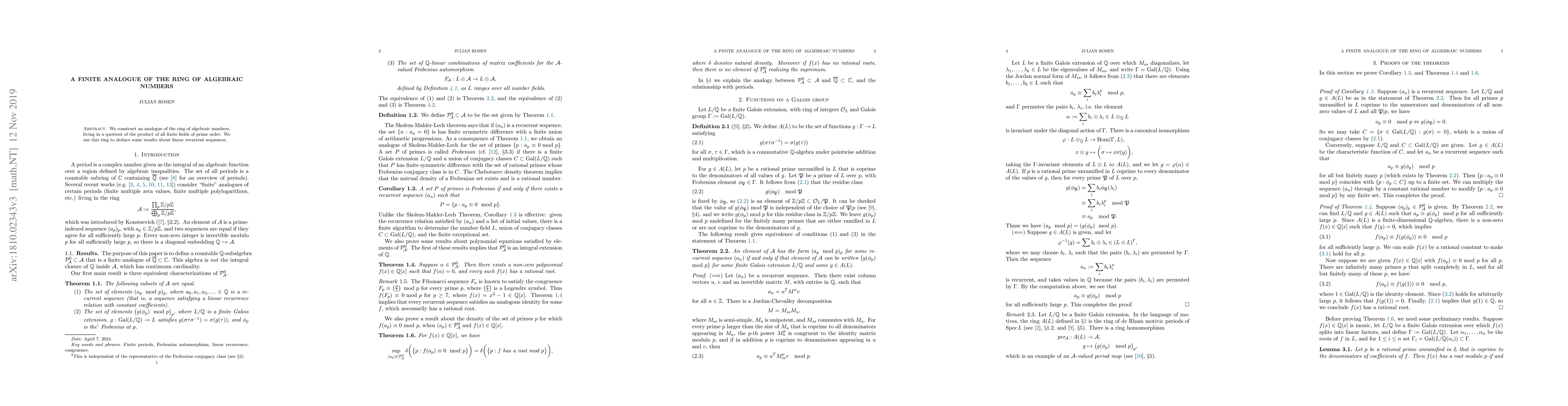 We construct an analogue of the ring of algebraic numbers, living in a quotient of the product of all finite fields of prime order. We use this ring to deduce some results about linear recurrent sequences.