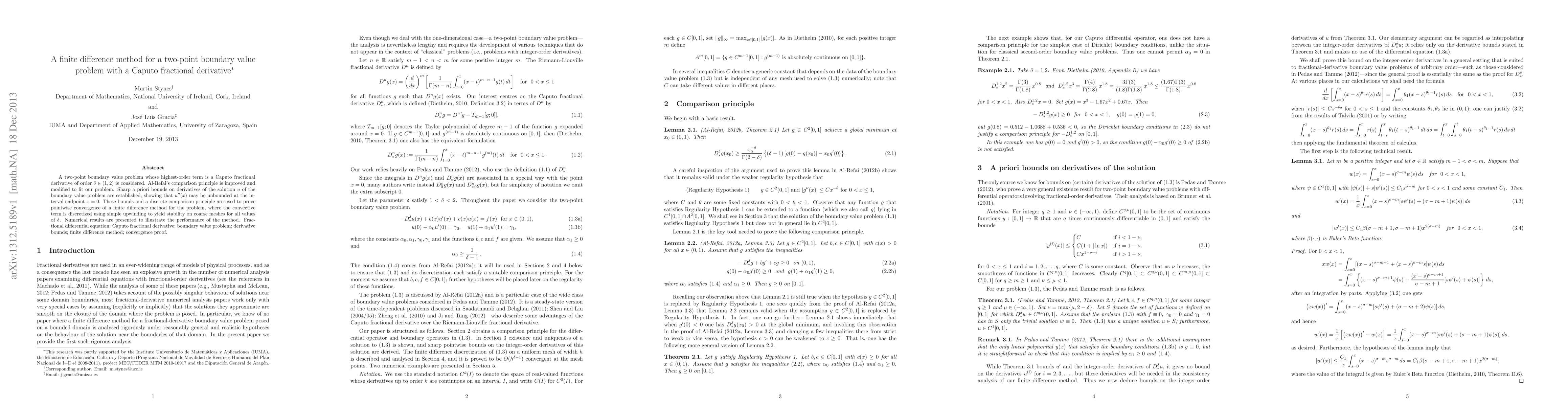 A new finite difference method is proposed for solving a boundary value problem with a Caputo fractional derivative, demonstrating pointwise convergence on coarse meshes with stability.