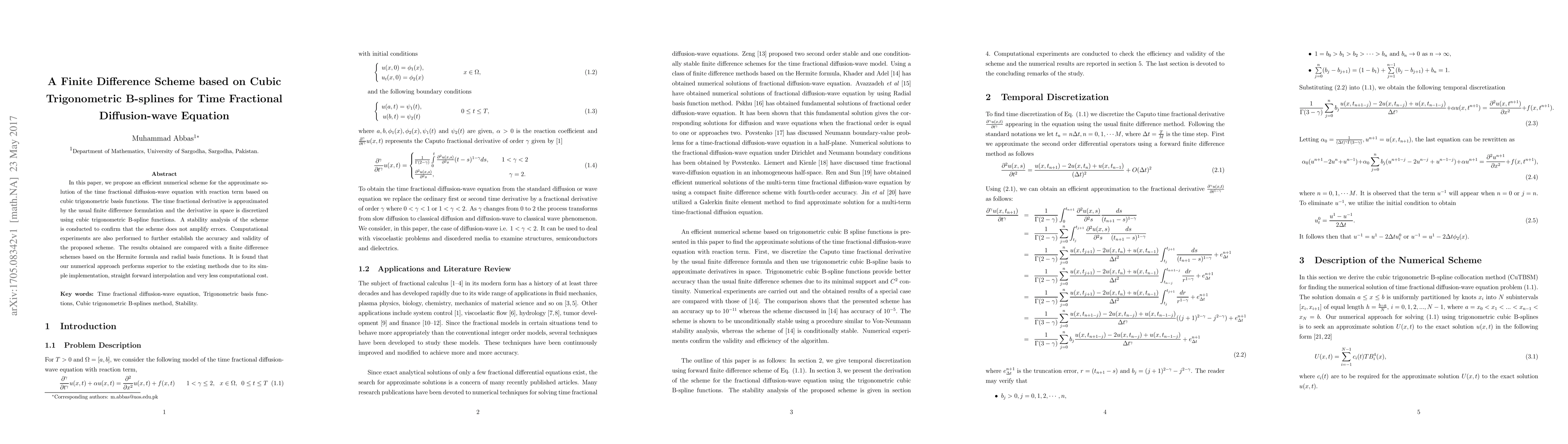 This paper proposes an efficient numerical scheme using cubic trigonometric B-splines for solving the time fractional diffusion-wave equation. The scheme is shown to be stable and more accurate than existing methods based on computational experiments and comparisons.