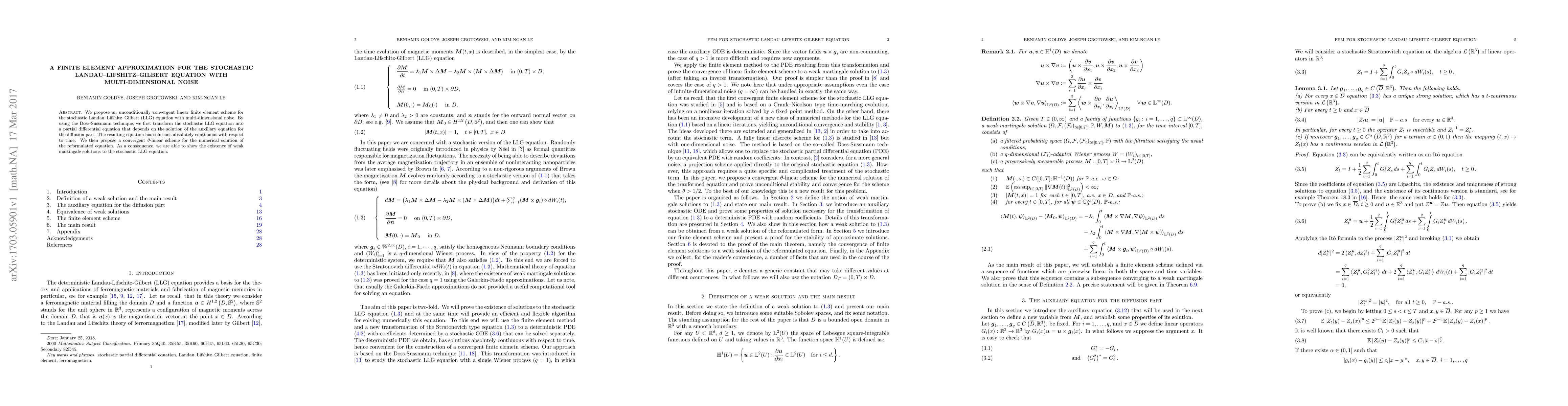 This paper proposes an unconditionally convergent linear finite element scheme for the stochastic Landau-Lifshitz-Gilbert equation with multi-dimensional noise. Using the Doss-Sussmann technique, the authors transform the stochastic equation into a partial differential equation, then demonstrate the existence of weak martingale solutions via a $\theta$-linear scheme.