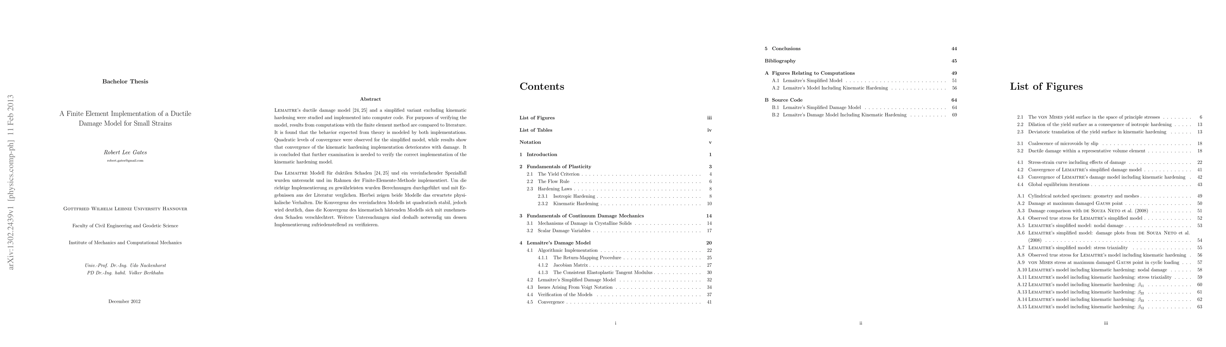 This study contributes to the field of continuum damage mechanics by providing a computational implementation of Lemaitre's ductile damage model, which can be useful for predicting material behavior under complex loading conditions.