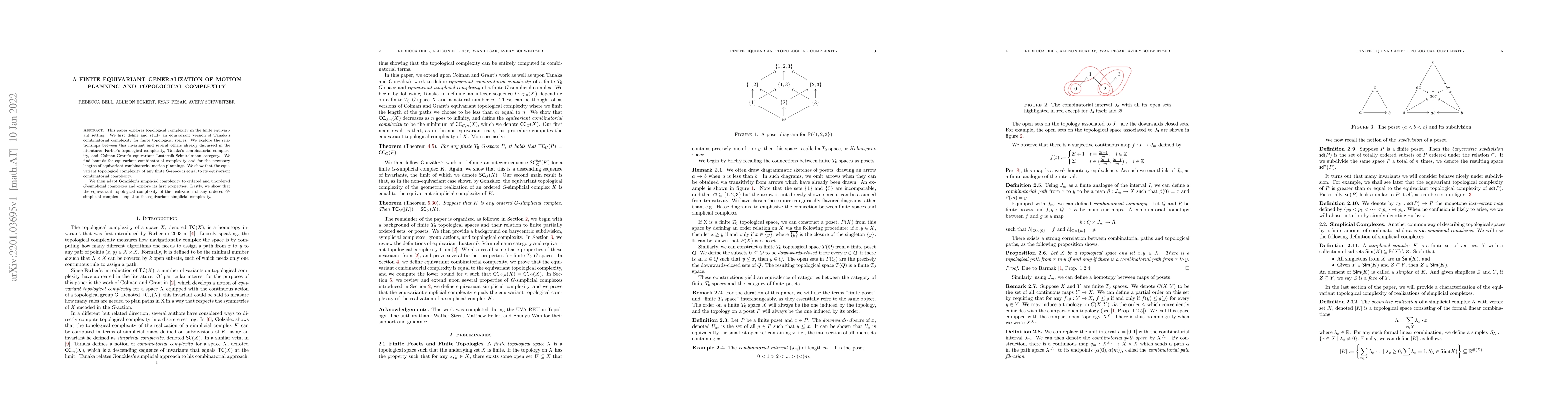 This paper generalizes motion planning and topological complexity in finite equivariant settings, defining an equivariant version of Tanaka's combinatorial complexity and establishing relationships with other invariants. It concludes that the equivariant topological complexity equals equivariant combinatorial complexity for finite $G$-spaces and explores equivariant simplicial complexity in $G$-simplicial complexes.