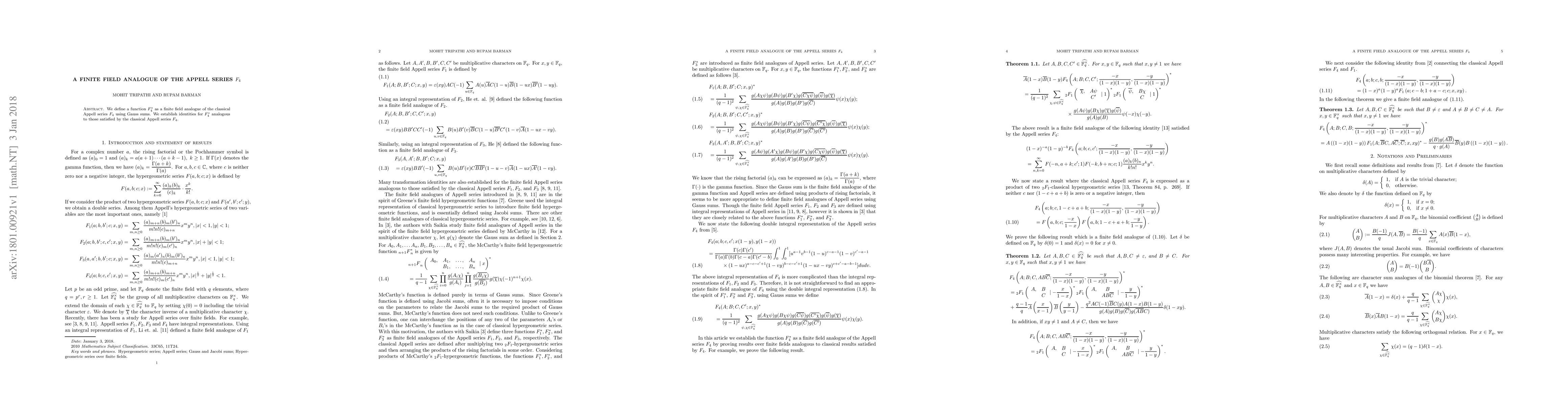 This paper introduces a finite field analogue of the Appell series $F_4$ using Gauss sums, establishing identities similar to those of the classical series $F_4$. The findings have implications for number theory and algebra.