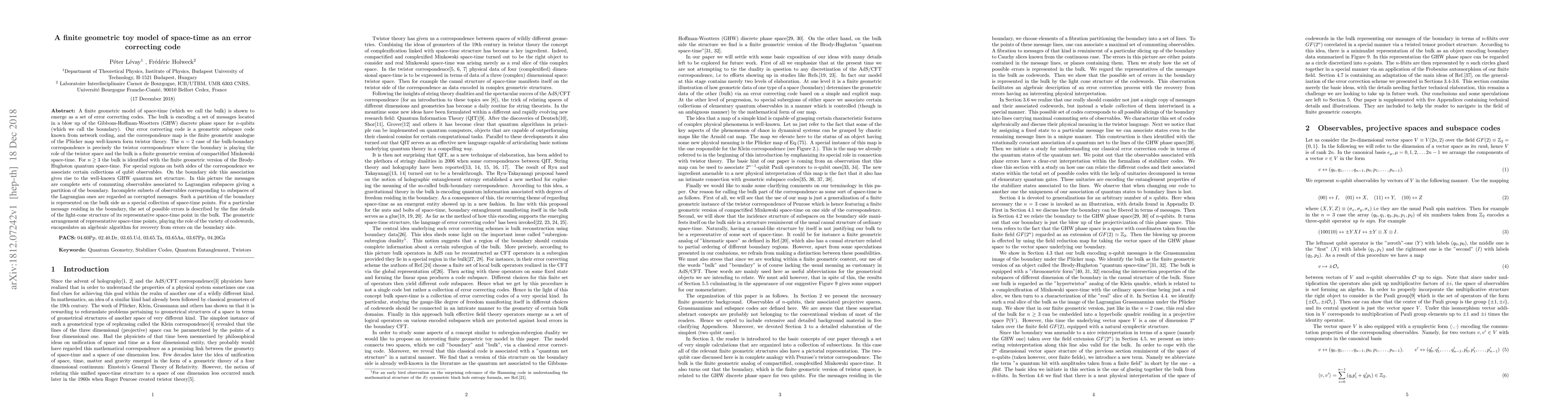 A finite geometric model of space-time (which we call the bulk) is shown to emerge as a set of error correcting codes. The bulk is encoding a set of messages located in a blow up of the Gibbons-Hoffman-Wootters (GHW) discrete phase space for $n$-qubits (which we call the boundary). Our error correcting code is a geometric subspace code known from network coding, and the correspondence map is the finite geometric analogue of the Pl\"ucker map well-known form twistor theory. The $n=2$ case of the bulk-boundary correspondence is precisely the twistor correspondence where the boundary is playing the role of the twistor space and the bulk is a finite geometric version of compactified Minkowski space-time. For $n\geq 3$ the bulk is identified with the finite geometric version of the Brody-Hughston quantum space-time. For special regions on both sides of the correspondence we associate certain collections of qubit observables. On the boundary side this association gives rise to the well-known GHW quantum net structure. In this picture the messages are complete sets of commuting observables associated to Lagrangian subspaces giving a partition of the boundary. Incomplete subsets of observables corresponding to subspaces of the Lagrangian ones are regarded as corrupted messages. Such a partition of the boundary is represented on the bulk side as a special collection of space-time points. For a particular message residing in the boundary, the set of possible errors is described by the fine details of the light-cone structure of its representative space-time point in the bulk. The geometric arrangement of representative space-time points, playing the role of the variety of codewords, encapsulates an algebraic algorithm for recovery from errors on the boundary side.