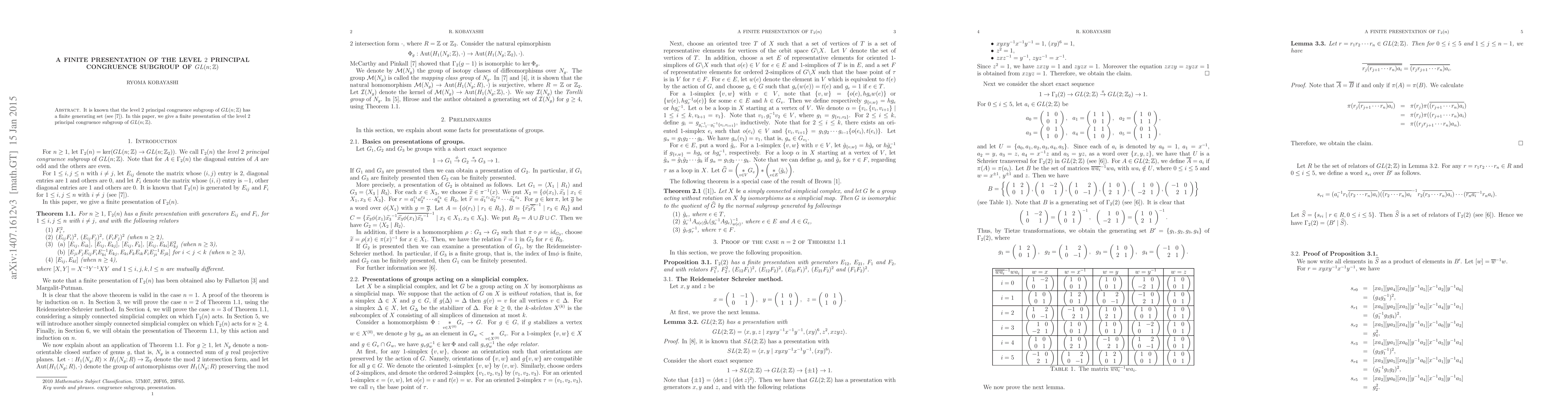The paper provides a finite presentation for the level 2 principal congruence subgroup of $GL(n;\mathbb{Z})$ using a combination of group theory and combinatorial methods, specifically focusing on the subgroup's structure and generators.