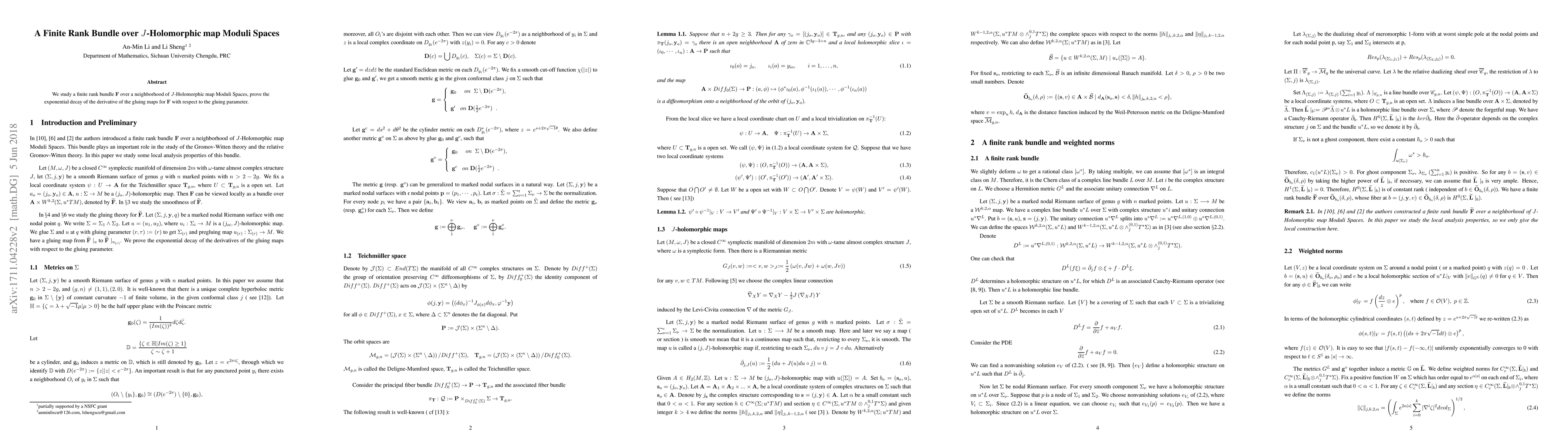 Researchers studied a finite rank bundle over $J$-Holomorphic map Moduli Spaces, finding that its derivative gluing maps decay exponentially with the gluing parameter.
