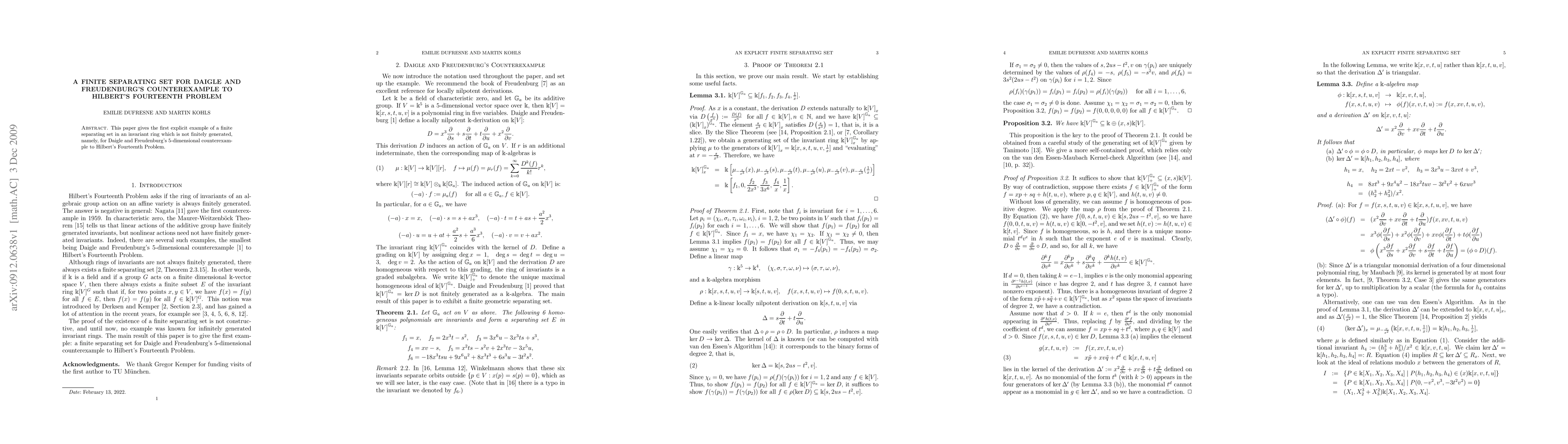 Researchers found a finite separating set in a 5-dimensional ring that contradicts Hilbert's Fourteenth Problem, providing an explicit example for the first time.