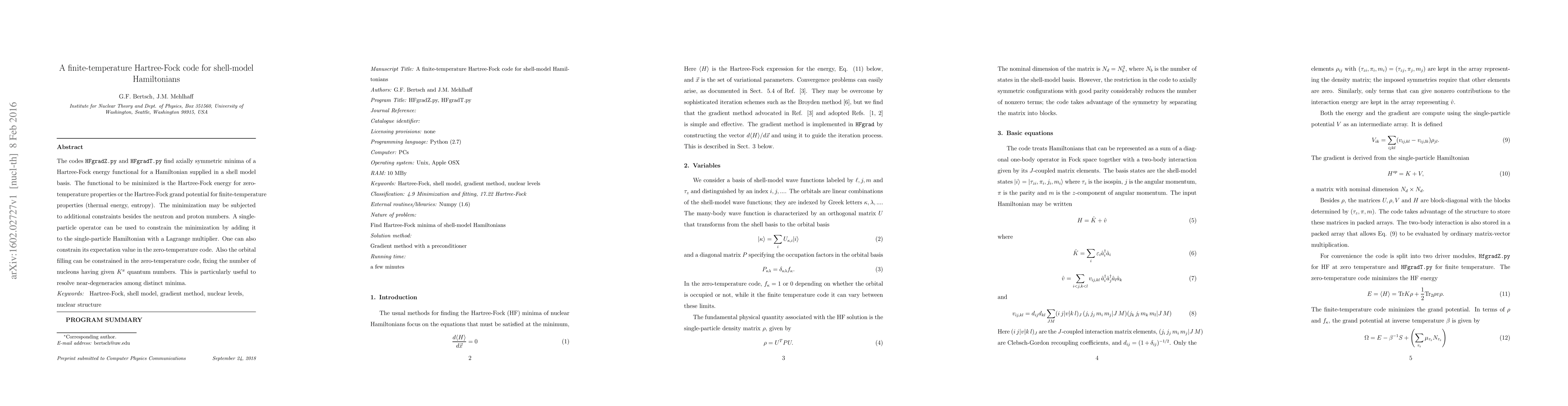 The codes HFgradZ.py and HFgradT.py find axially symmetric minima of a Hartree-Fock energy functional for a Hamiltonian supplied in a shell-model basis. The functional to be minimized is the Hartree-Fock energy for zero-temperature properties or the Hartree-Fock grand potential for finite-temperature properties. Various constraints may be imposed on the minima.