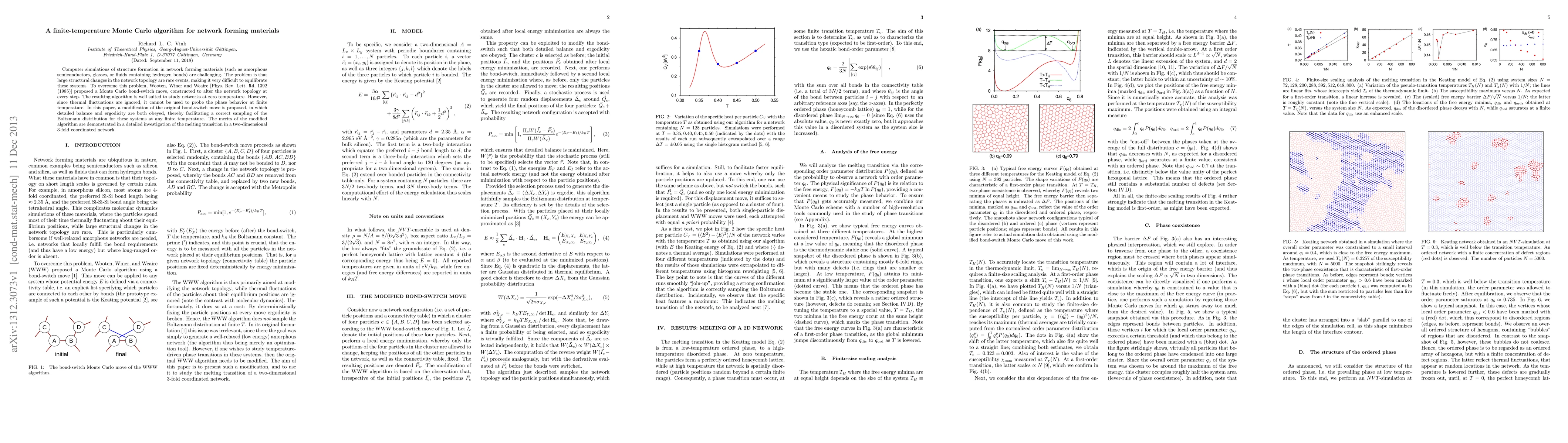 This paper proposes a modified finite-temperature Monte Carlo algorithm for network forming materials, ensuring detailed balance and ergodicity to accurately sample the Boltzmann distribution at any temperature. The effectiveness of the new algorithm is demonstrated through a detailed study of the melting transition in a two-dimensional 3-fold coordinated network.