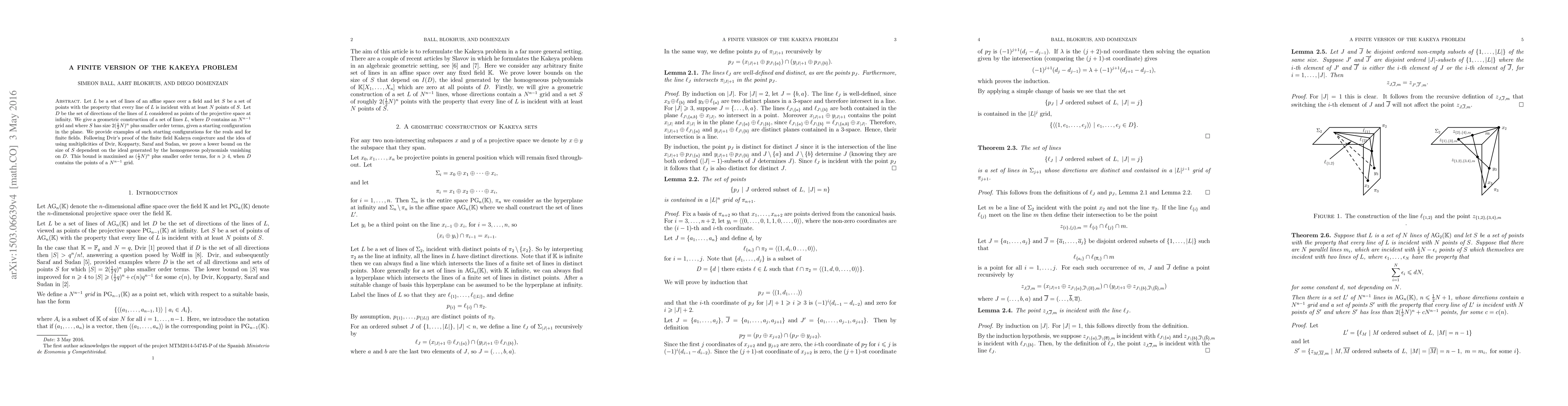Researchers created a finite version of the Kakeya problem, showing that a set of points can achieve a specific size based on the ideal generated by homogeneous polynomials vanishing on a grid of directions in projective space.