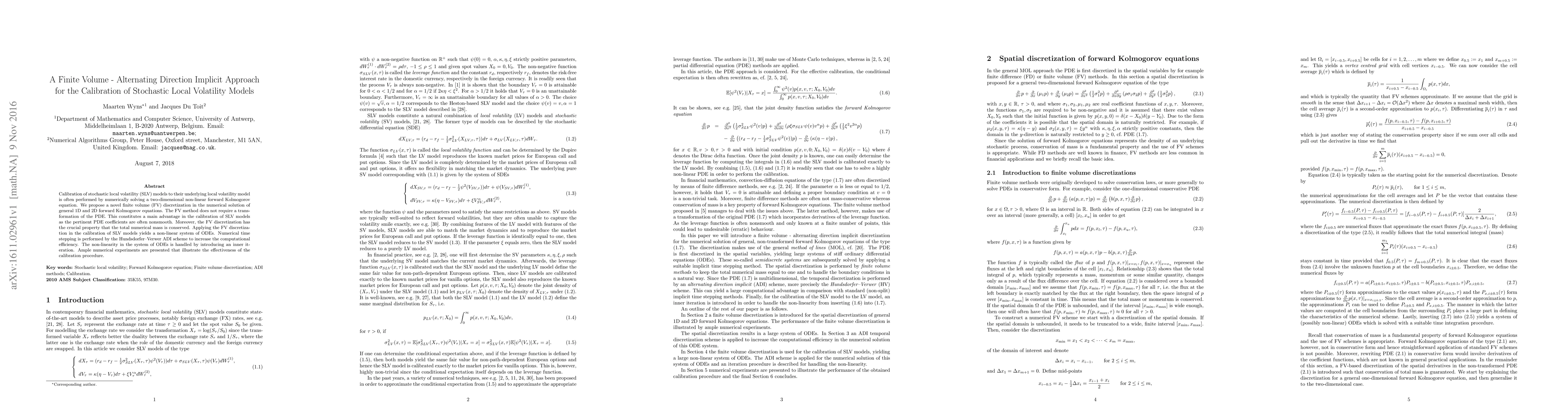 This paper proposes a finite volume discretization method for solving the forward Kolmogorov equation in the calibration of stochastic local volatility models, which avoids transforming the PDE and conserves numerical mass. The calibration process is enhanced using the Hundsdorfer-Verwer ADI scheme and inner iterations, demonstrated through numerical experiments.