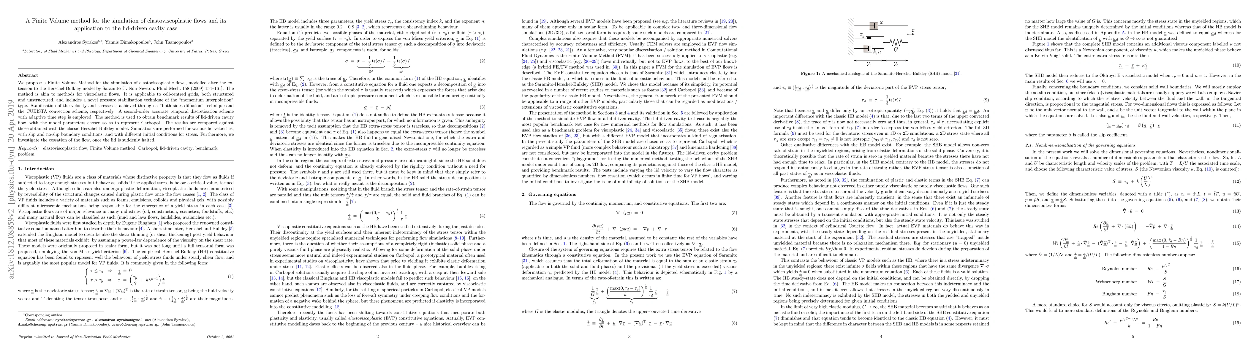 This paper introduces a Finite Volume Method for simulating elastoviscoplastic flows based on the Herschel-Bulkley model, featuring a novel pressure stabilisation technique and a "both sides diffusion" method for velocity stabilisation. Benchmark results for lid-driven cavity flow are obtained and compared against the classic Herschel-Bulkley model, with analyses on flow cessation upon lid halt.