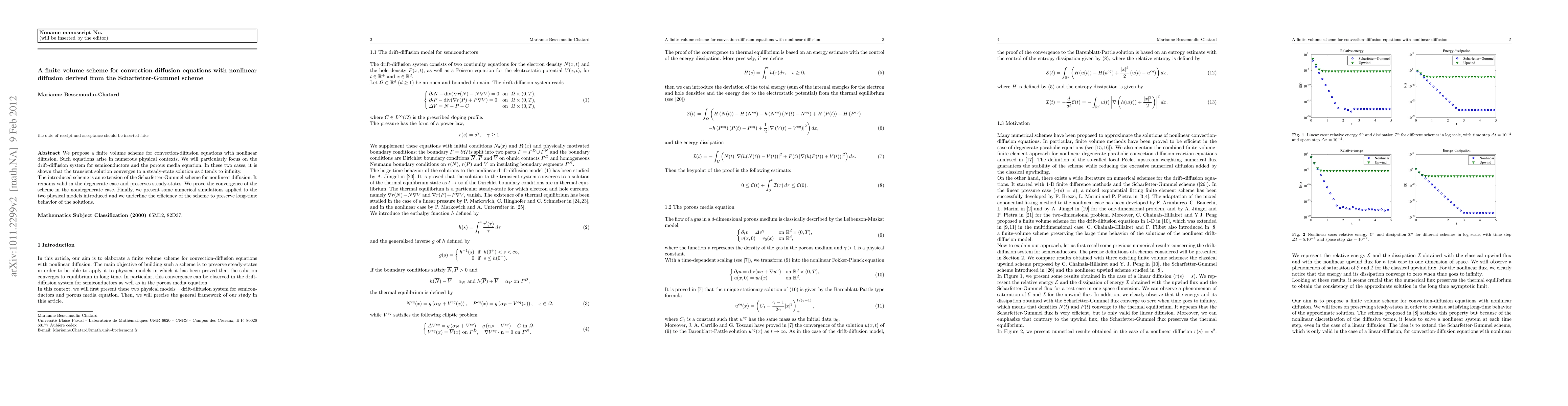 This paper proposes a finite volume scheme for convection-diffusion equations with nonlinear diffusion, extending the Scharfetter-Gummel scheme. The scheme is validated through numerical simulations for semiconductor drift-diffusion and porous media equations, demonstrating its efficiency in preserving long-time behavior.