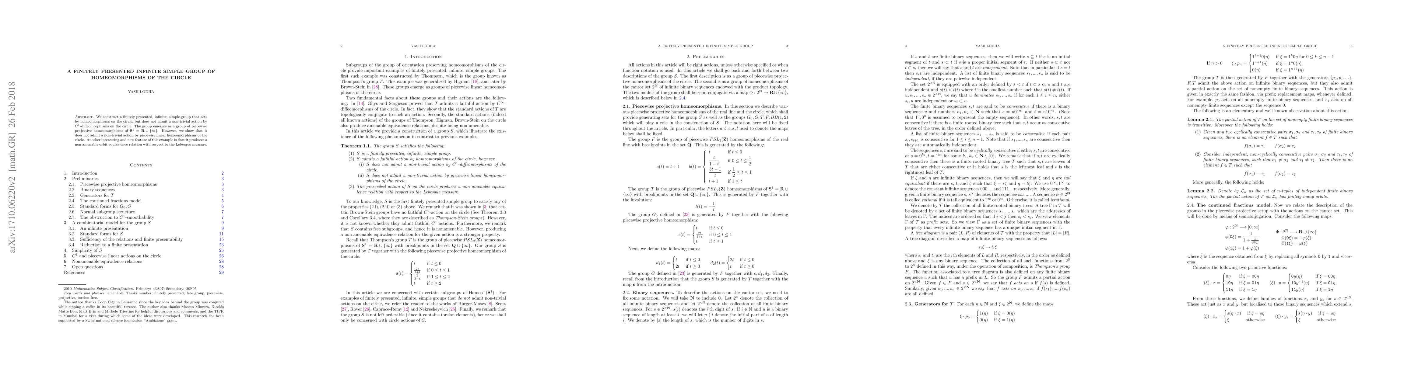 This paper constructs a finitely presented, infinite, simple group of homeomorphisms on the circle that does not allow a non-trivial action by $C^1$-diffeomorphisms or piecewise linear homeomorphisms. It also introduces a non-amenable orbit equivalence relation with respect to the Lebesgue measure.