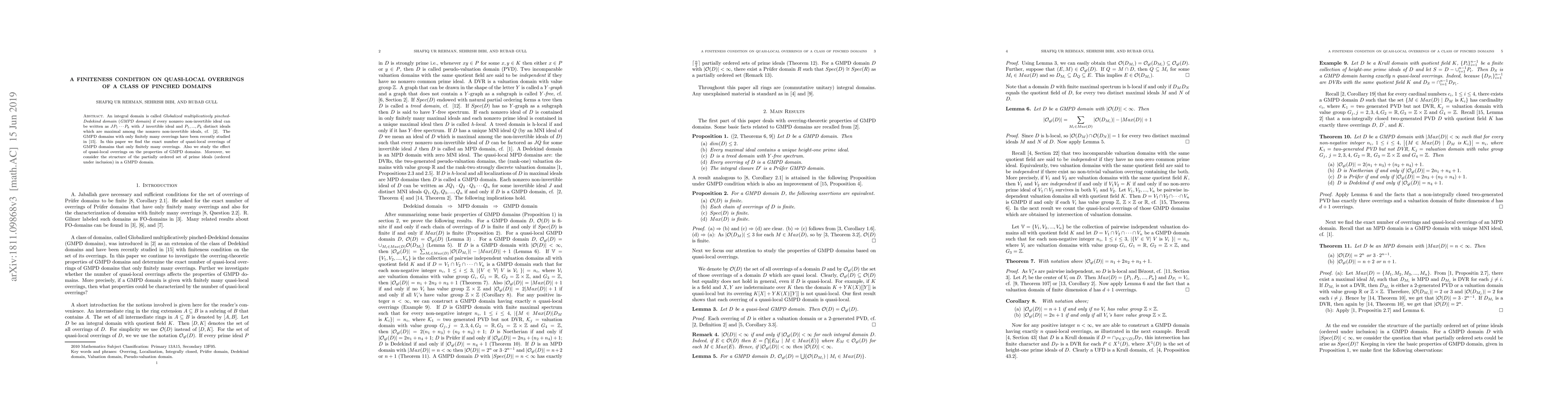 This paper investigates GMPD domains with finitely many quasi-local overrings, determining the exact number of such overrings and examining their impact on the properties of GMPD domains. It also explores the structure of the partially ordered set of prime ideals within these domains.