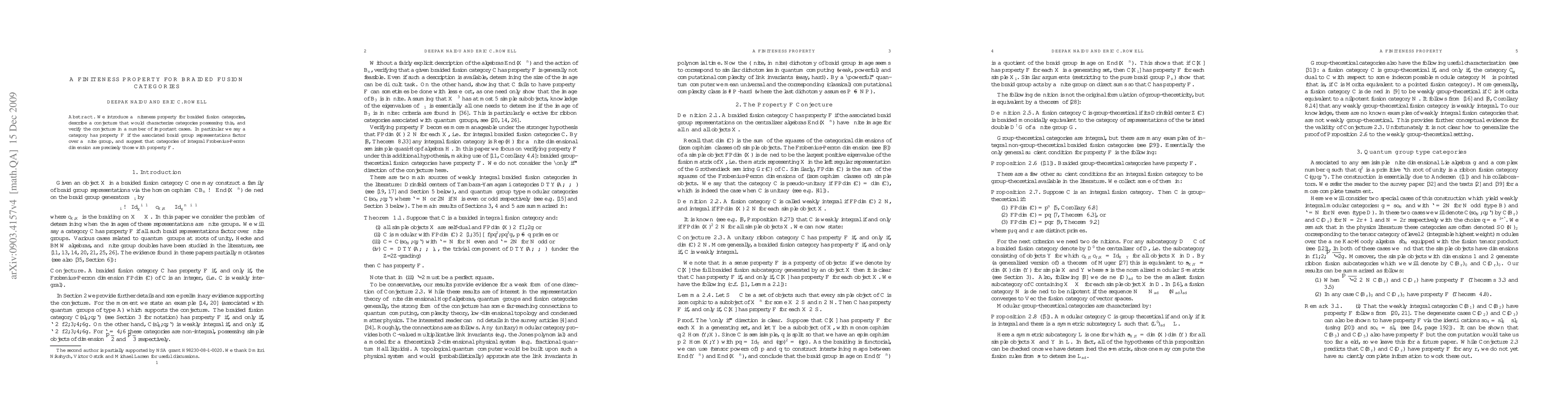 This paper introduces a finiteness property F for braided fusion categories, where F indicates that associated braid group representations factor over a finite group. The authors verify this conjecture in several significant cases and propose that categories with integral Frobenius-Perron dimension exhibit property F.