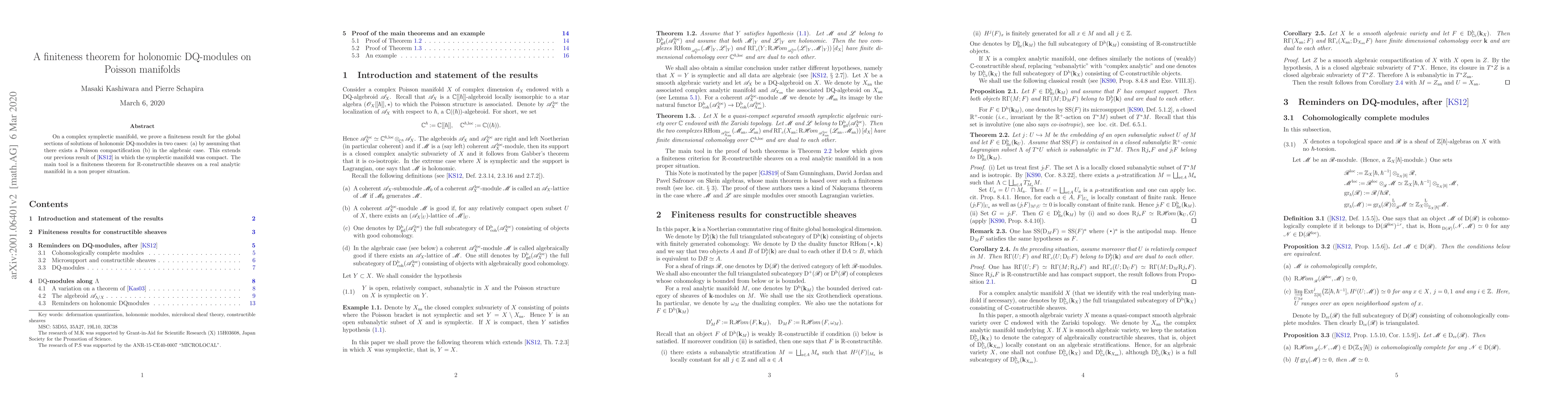 This paper proves a finiteness theorem for global sections of holonomic DQ-modules on complex symplectic manifolds under the conditions of Poisson compactification or in the algebraic case, extending previous results for compact symplectic manifolds. The key method involves a finiteness theorem for R-constructible sheaves on real analytic manifolds.
