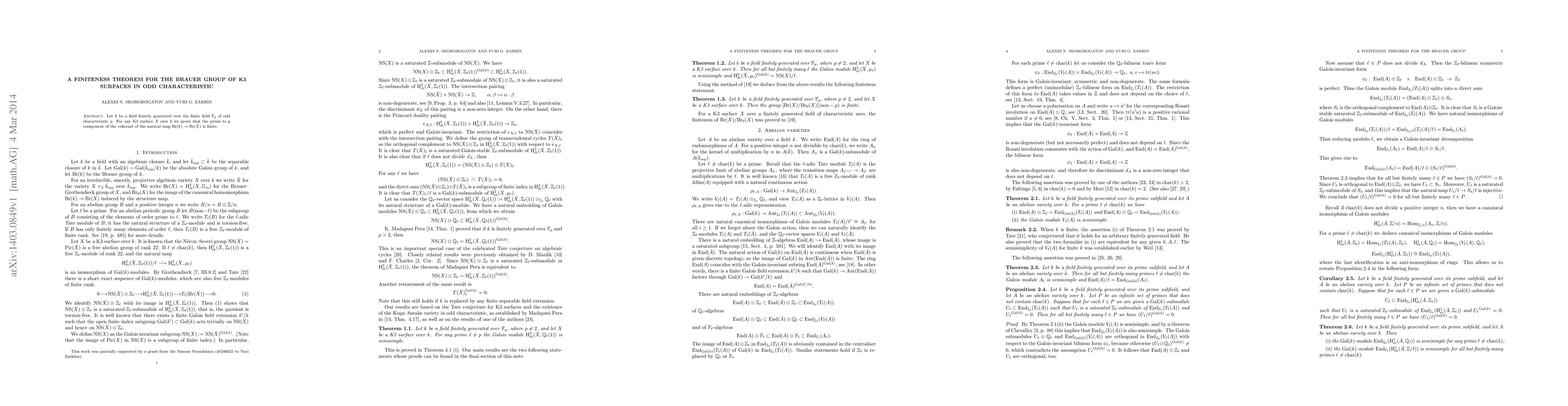 Let $k$ be a field finitely generated over the finite field $\mathbb F_p$ of odd characteristic $p$. For any K3 surface $X$ over $k$ we prove that the prime to $p$ component of the cokernel of the natural map $Br(k)\to Br(X)$ is finite.