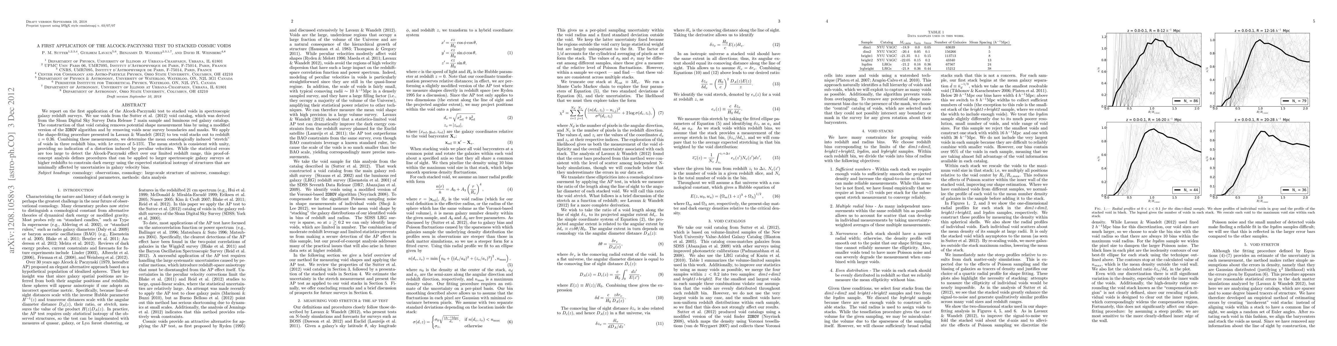 This paper applies the Alcock-Paczynski test to stacked cosmic voids from the Sloan Digital Sky Survey, finding no significant distortion, and suggests that this method can be used in future larger surveys to constrain dark energy. The analysis uses voids from the Sutter et al. (2012) catalog and shape-fitting procedures from Lavaux & Wandelt (2012).