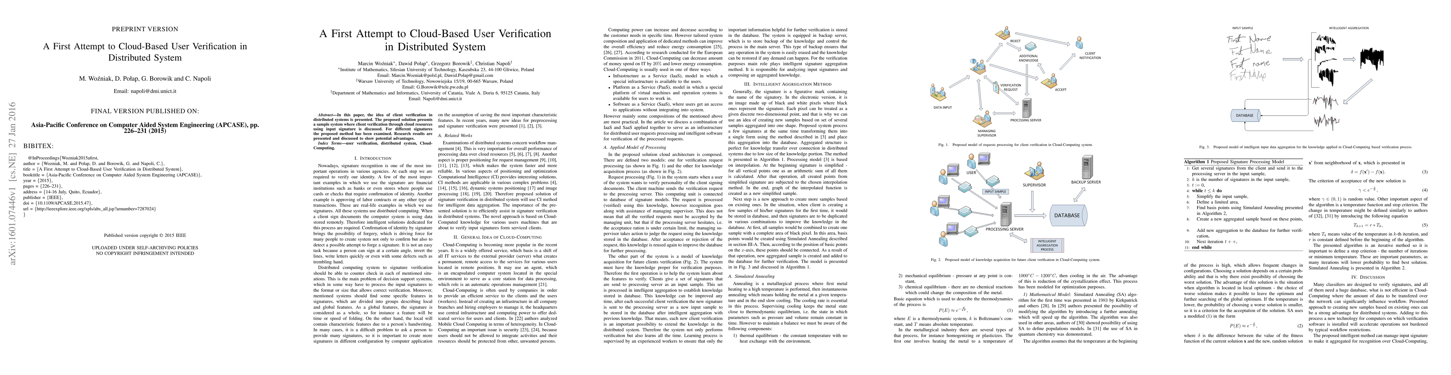 This paper proposes a cloud-based user verification method using input signatures in distributed systems, exploring its potential advantages through research results.