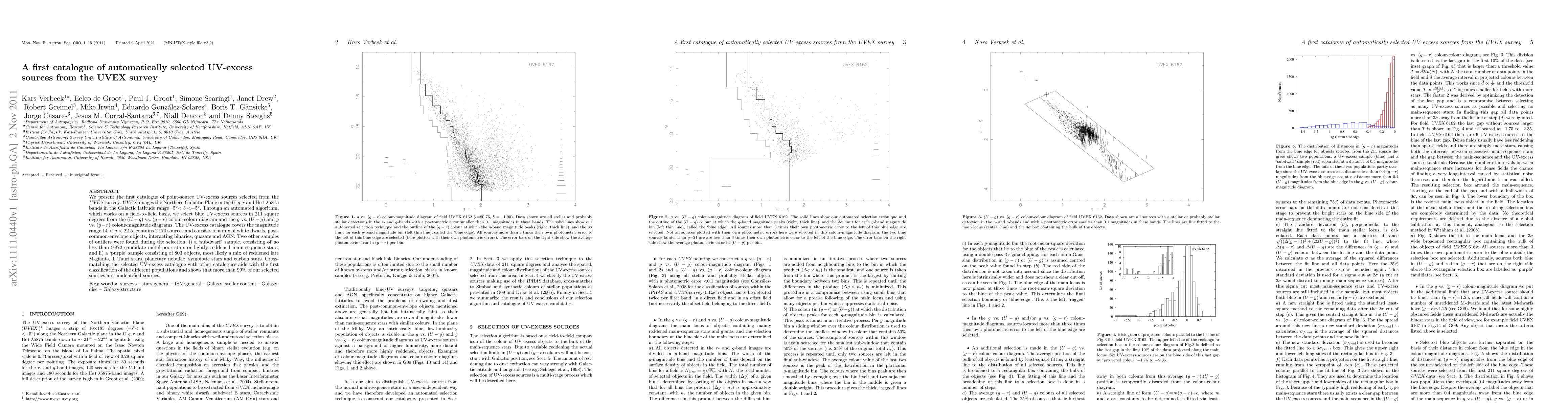 We present the first catalogue of point-source UV-excess sources selected from the UVEX survey. UVEX images the Northern Galactic Plane in the U, g, r and HeI5875 bands in the Galactic latitude range -5deg