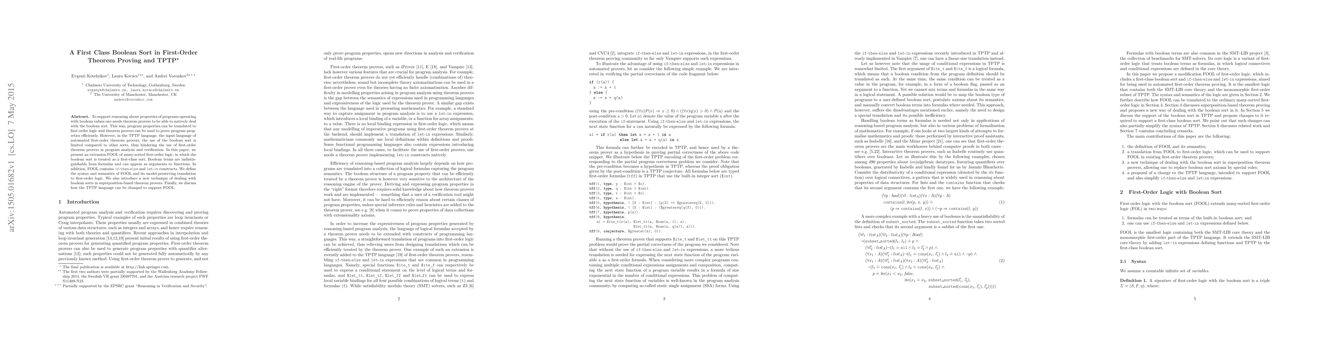 This paper introduces FOOL, an extension of many-sorted first-order logic that treats the boolean sort as first-class, enabling efficient use of theorem provers in program analysis. It also proposes a translation method and a new technique for superposition-based theorem proving to handle boolean sorts.