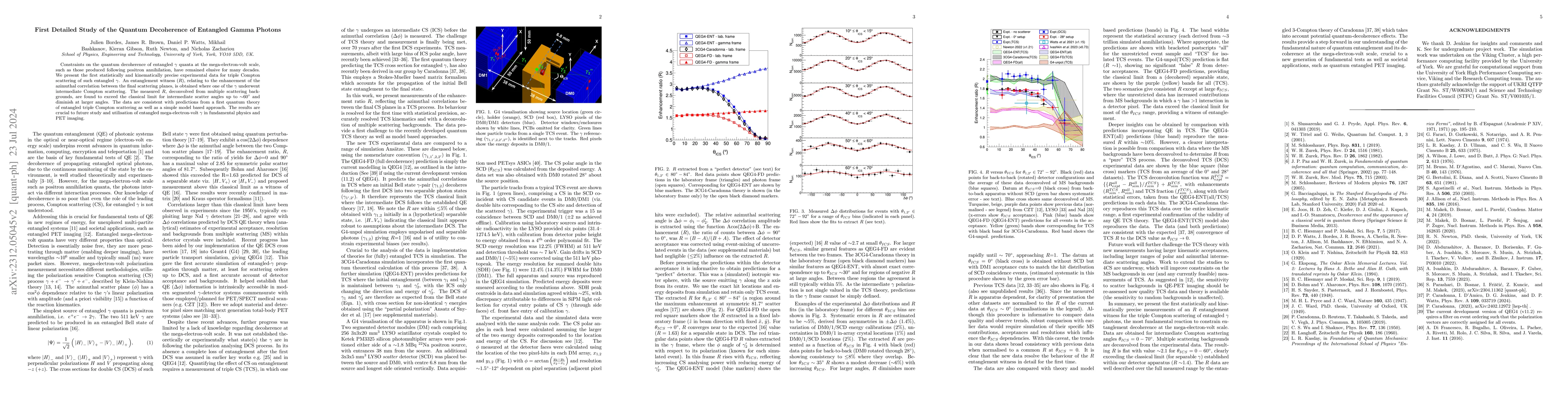 This study provides the first detailed experimental data on the quantum decoherence of entangled MeV gamma photons through triple Compton scattering, revealing entanglement conservation or decoherence proportional to the visibility of the scattering process. The results will guide theoretical models for decoherence at the MeV scale, crucial for fundamental physics and medical imaging.