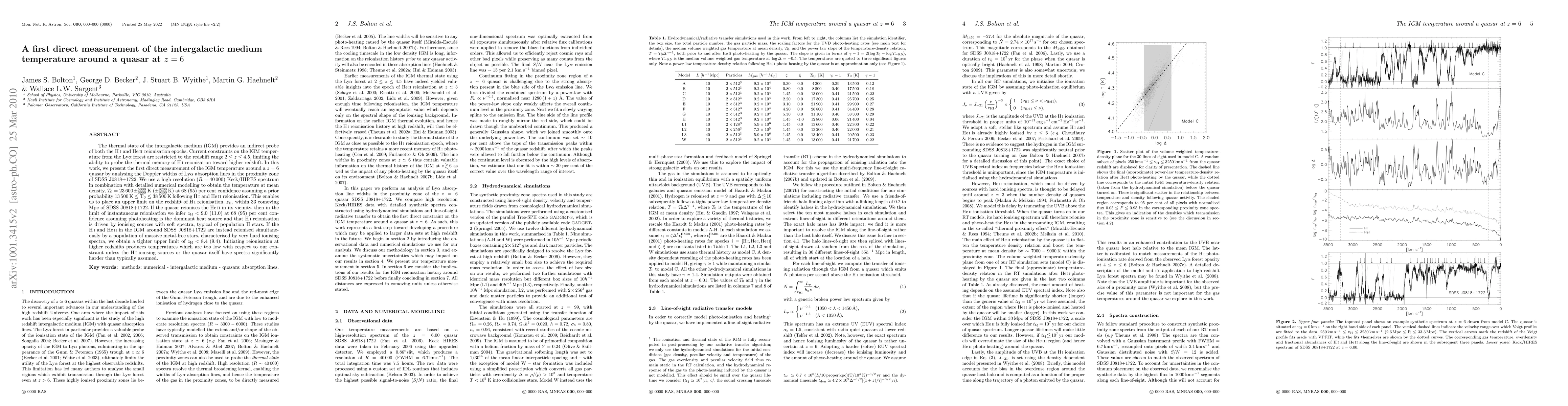 Researchers measured the temperature of intergalactic medium around a z=6 quasar for the first time, setting an upper limit on the redshift of HI reionisation at 33 comoving Mpc.