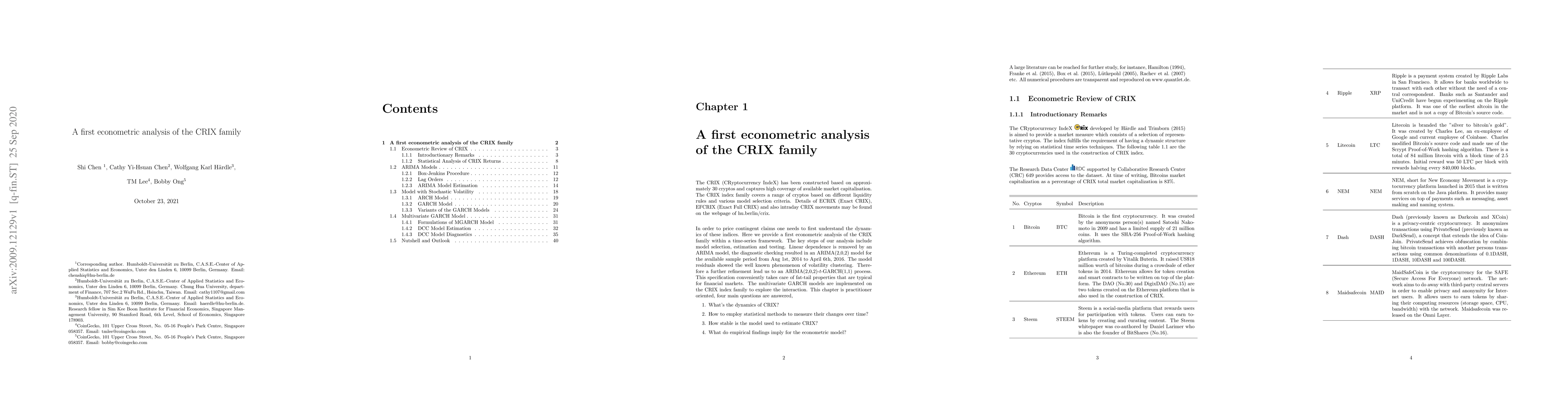 This paper conducts an initial econometric analysis of the CRIX family indices using a time-series framework, identifying an ARIMA(2,0,2) model for the data from August 2014 to April 2016. To address volatility clustering, the study refines the model to an ARIMA(2,0,2)-t-GARCH(1,1) process, which accounts for fat tails in financial markets, and explores interactions using multivariate GARCH models.