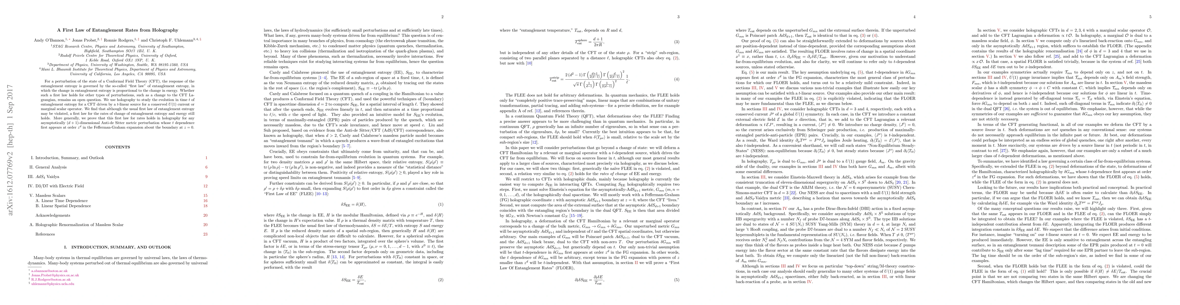 This paper demonstrates that while the traditional "first law" of entanglement entropy may not apply universally, a related law governing the rates of change of entanglement entropy and energy does hold in holography, particularly for certain perturbations in CFTs and AdS metrics.