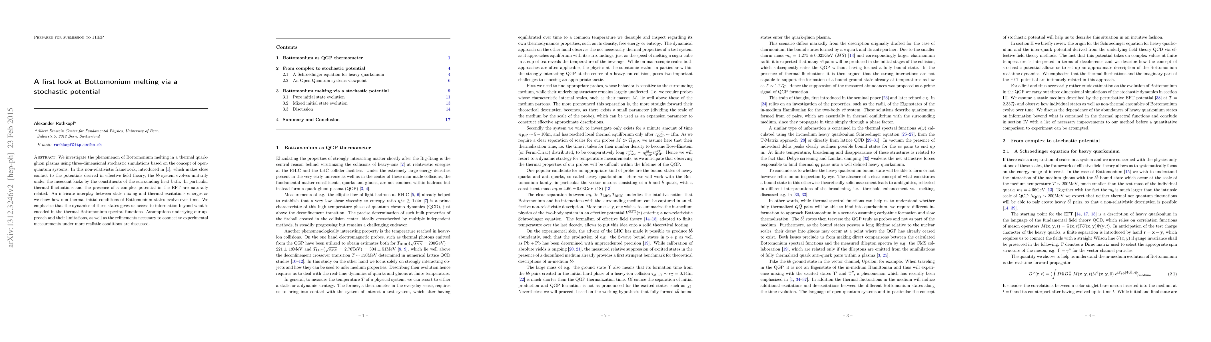 We investigate the phenomenon of Bottomonium melting in a thermal quark-gluon plasma using three-dimensional stochastic simulations based on the concept of open-quantum systems. In this non-relativistic framework, introduced in [Phys.Rev. D85 (2012) 105011], which makes close contact to the potentials derived in effective field theory, the $b\bar{b}$ system evolves unitarily under the incessant kicks by the constituents of the surrounding heat bath. In particular thermal fluctuations and the presence of a complex potential in the EFT are naturally related. An intricate interplay between state mixing and thermal excitations emerges as we show how non-thermal initial conditions of Bottomonium states evolve over time. We emphasize that the dynamics of these states gives us access to information beyond what is encoded in the thermal Bottomonium spectral functions. Assumptions underlying our approach and their limitations, as well as the refinements necessary to connect to experimental measurements under more realistic conditions are discussed.