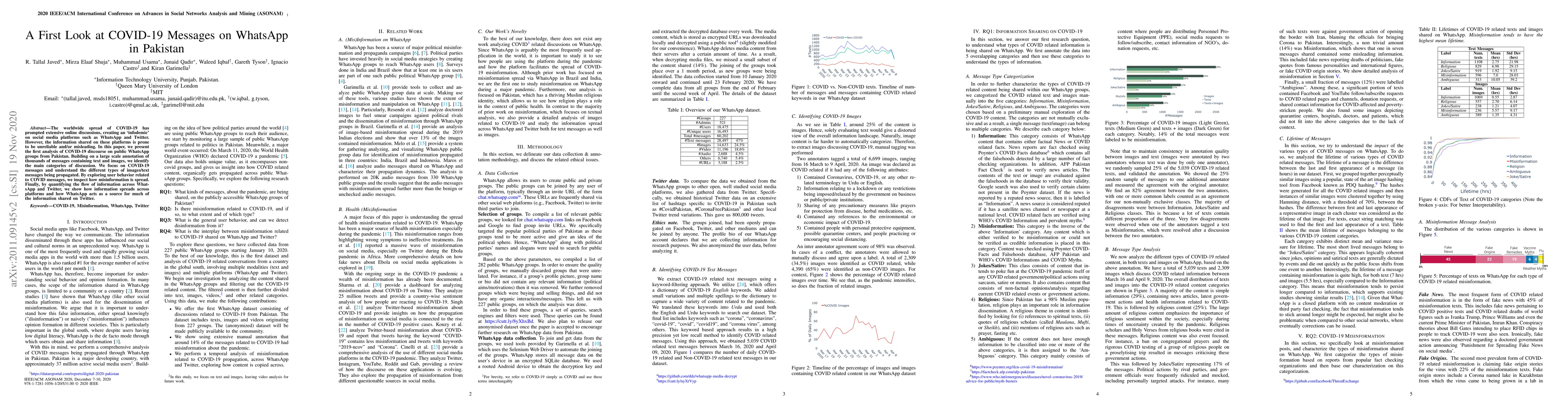 This paper analyzes COVID-19 messages on WhatsApp in Pakistan, identifying main discussion categories and types of shared content. It explores how misinformation spreads and quantifies the information flow between WhatsApp and Twitter, revealing WhatsApp's role as a significant source for Twitter's COVID-19 content.