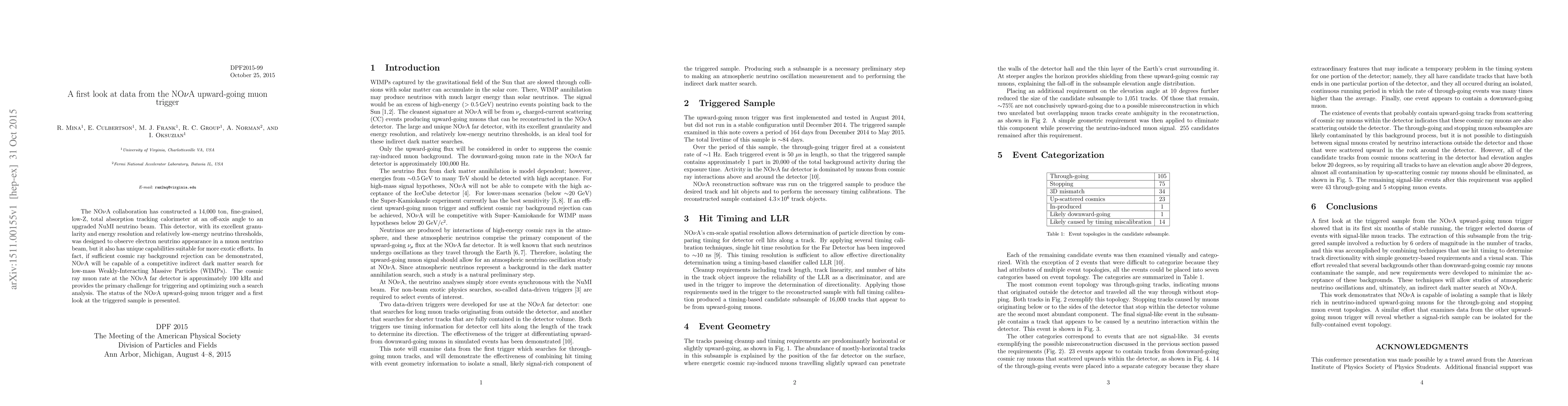 The NO$\nu$A collaboration has constructed a 14,000 ton, fine-grained, low-Z, total absorption tracking calorimeter at an off-axis angle to an upgraded NuMI neutrino beam. This detector, with its excellent granularity and energy resolution and relatively low-energy neutrino thresholds, was designed to observe electron neutrino appearance in a muon neutrino beam, but it also has unique capabilities suitable for more exotic efforts. In fact, if sufficient cosmic ray background rejection can be demonstrated, NO$\nu$A will be capable of a competitive indirect dark matter search for low-mass Weakly-Interacting Massive Particles (WIMPs). The cosmic ray muon rate at the NO$\nu$A far detector is approximately 100 kHz and provides the primary challenge for triggering and optimizing such a search analysis. The status of the NO$\nu$A upward-going muon trigger and a first look at the triggered sample is presented.