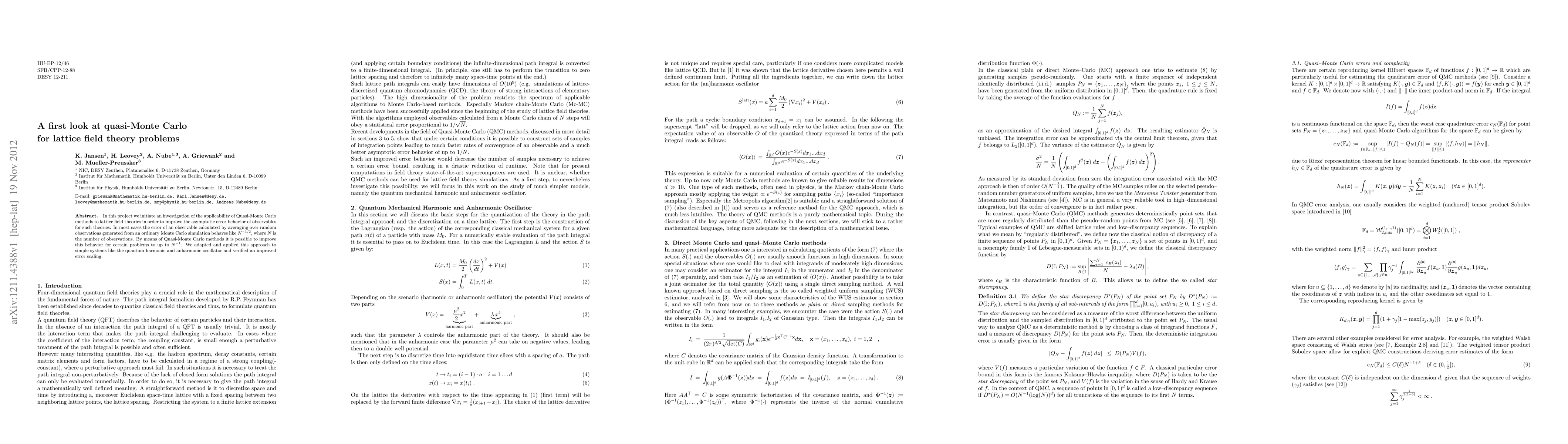 This paper explores the application of Quasi-Monte Carlo methods to lattice field theory, aiming to enhance the asymptotic error behavior of observables. It demonstrates that these methods can improve the error scaling from 1/sqrt(N) to 1/N for certain problems, as verified through simulations on quantum harmonic and anharmonic oscillators.