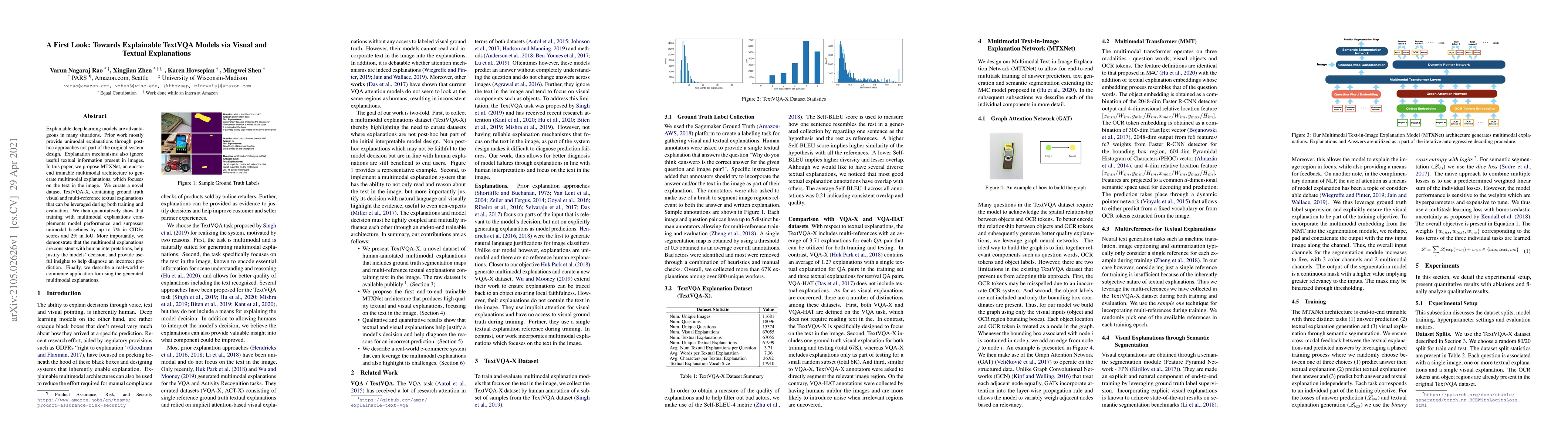Explainable deep learning models are advantageous in many situations. Prior work mostly provide unimodal explanations through post-hoc approaches not part of the original system design. Explanation mechanisms also ignore useful textual information present in images. In this paper, we propose MTXNet, an end-to-end trainable multimodal architecture to generate multimodal explanations, which focuses on the text in the image. We curate a novel dataset TextVQA-X, containing ground truth visual and multi-reference textual explanations that can be leveraged during both training and evaluation. We then quantitatively show that training with multimodal explanations complements model performance and surpasses unimodal baselines by up to 7% in CIDEr scores and 2% in IoU. More importantly, we demonstrate that the multimodal explanations are consistent with human interpretations, help justify the models' decision, and provide useful insights to help diagnose an incorrect prediction. Finally, we describe a real-world e-commerce application for using the generated multimodal explanations.