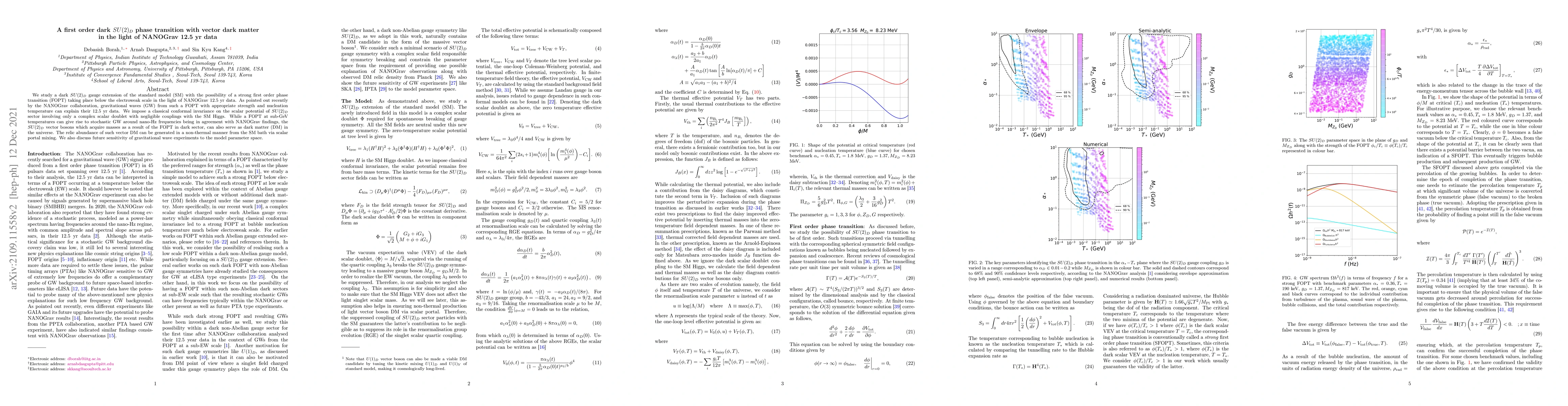 This paper explores a dark $SU(2)_D$ gauge extension of the Standard Model with a first-order phase transition that could generate gravitational waves explaining NANOGrav's 12.5 yr data. The vector bosons from this transition serve as vector dark matter, with its relic abundance produced non-thermally.