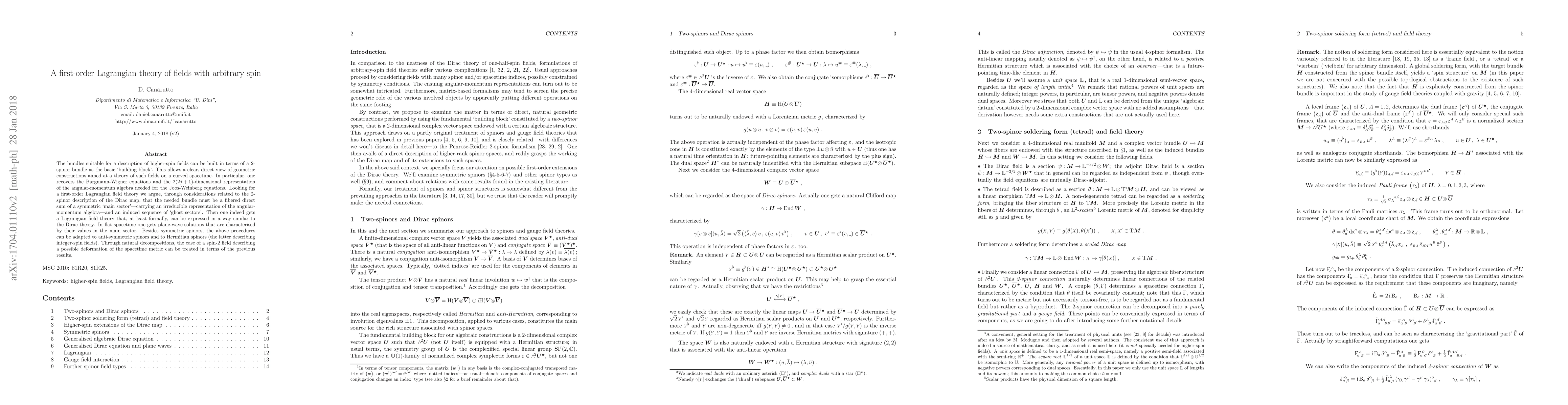 Researchers develop a first-order Lagrangian theory of fields with arbitrary spin using a 2-spinor bundle as the basic building block, revealing new insights into higher-spin field theories.