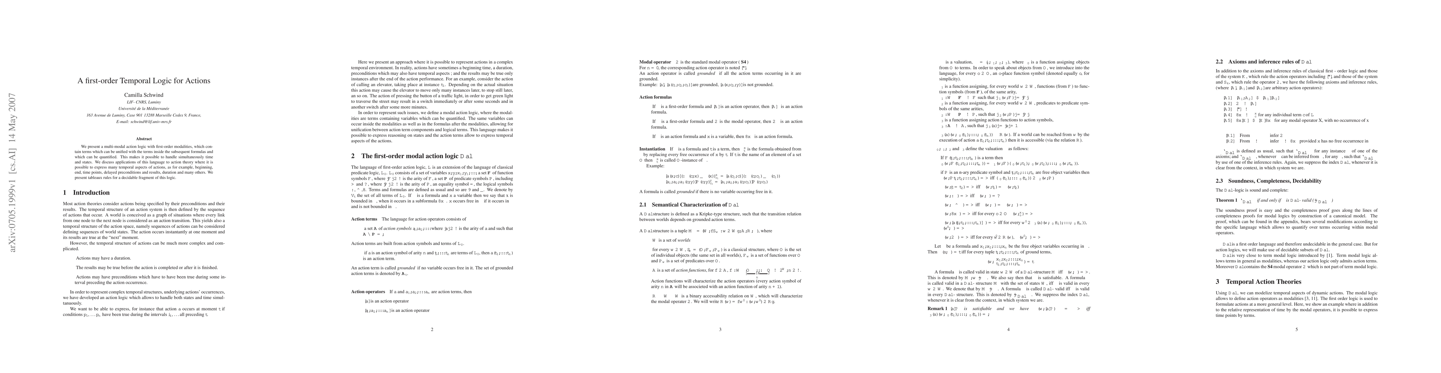 We present a multi-modal action logic with first-order modalities, which contain terms which can be unified with the terms inside the subsequent formulas and which can be quantified. This makes it possible to handle simultaneously time and states. We discuss applications of this language to action theory where it is possible to express many temporal aspects of actions, as for example, beginning, end, time points, delayed preconditions and results, duration and many others. We present tableaux rules for a decidable fragment of this logic.