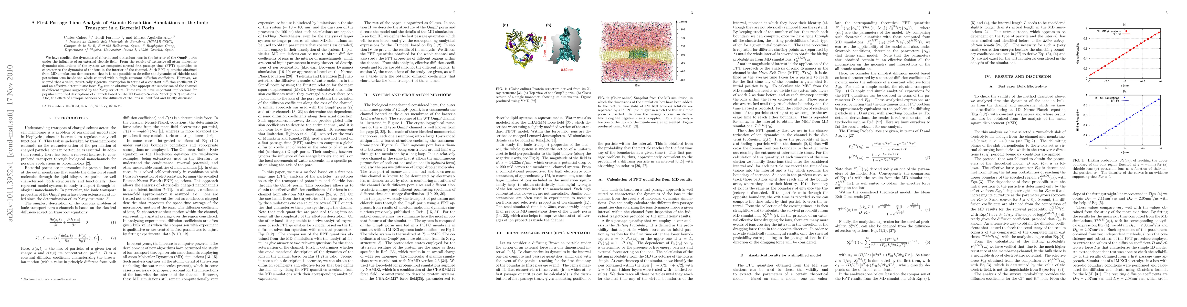 We have studied the dynamics of chloride and potassium ions in the interior of the OmpF porin under the influence of an external electric field. From the results of extensive all-atom molecular dynamics simulations of the system we computed several first passage time (FPT) quantities to characterize the dynamics of the ions in the interior of the channel. Such FPT quantities obtained from MD simulations demonstrate that it is not possible to describe the dynamics of chloride and potassium ions inside the whole channel with a single constant diffusion coefficient. However, we showed that a valid, statistically rigorous, description in terms of a constant diffusion coefficient D and an effective deterministic force Feff can be obtained after appropriate subdivison of the channel in different regions suggested by the X-ray structure. These results have important implications for popular simplified descriptions of channels based on the 1D Poisson-Nernst-Planck (PNP) equations. Also, the effect of entropic barriers on the diffusion of the ions is identified and briefly discussed.