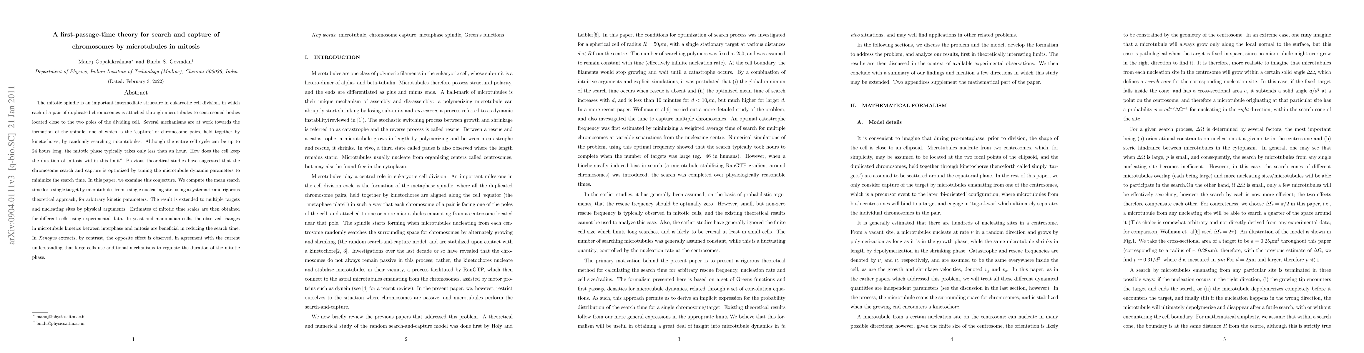 The mitotic spindle is an important intermediate structure in eukaryotic cell division, in which each of a pair of duplicated chromosomes is attached through microtubules to centrosomal bodies located close to the two poles of the dividing cell. Several mechanisms are at work towards the formation of the spindle, one of which is the `capture' of chromosome pairs, held together by kinetochores, by randomly searching microtubules. Although the entire cell cycle can be up to 24 hours long, the mitotic phase typically takes only less than an hour. How does the cell keep the duration of mitosis within this limit? Previous theoretical studies have suggested that the chromosome search and capture is optimized by tuning the microtubule dynamic parameters to minimize the search time. In this paper, we examine this conjecture. We compute the mean search time for a single target by microtubules from a single nucleating site, using a systematic and rigorous theoretical approach, for arbitrary kinetic parameters. The result is extended to multiple targets and nucleating sites by physical arguments. Estimates of mitotic time scales are then obtained for different cells using experimental data. In yeast and mammalian cells, the observed changes in microtubule kinetics between interphase and mitosis are beneficial in reducing the search time. In {\it Xenopus} extracts, by contrast, the opposite effect is observed, in agreement with the current understanding that large cells use additional mechanisms to regulate the duration of the mitotic phase.
