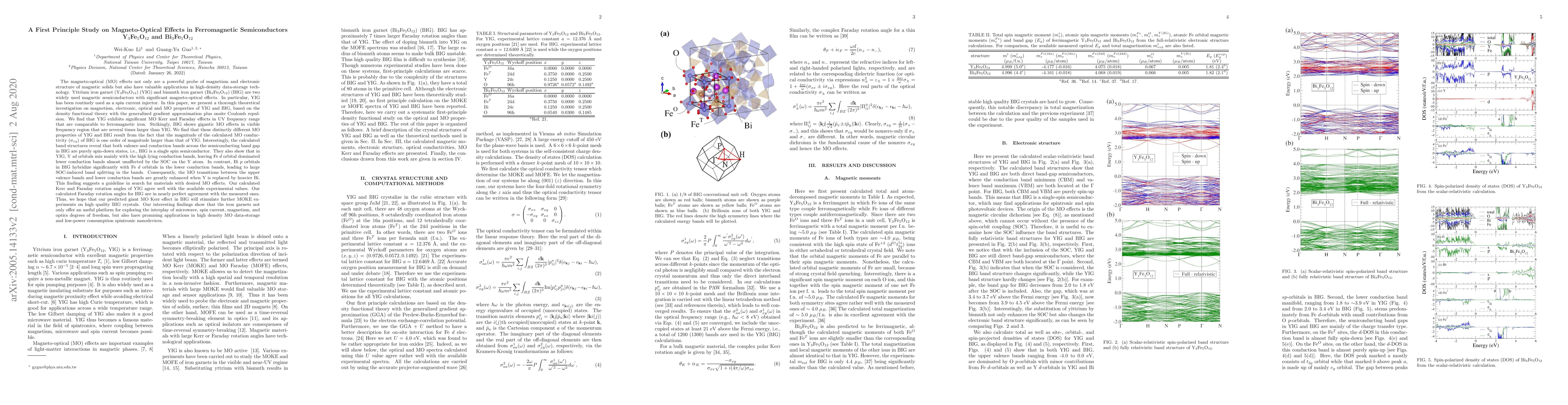 This study investigates magneto-optical effects in two ferromagnetic semiconductors, Yttrium Iron Garnet (YIG) and Bismuth Iron Garnet (BIG), using density functional theory, revealing large MO effects with potential applications in spintronic nanodevices.