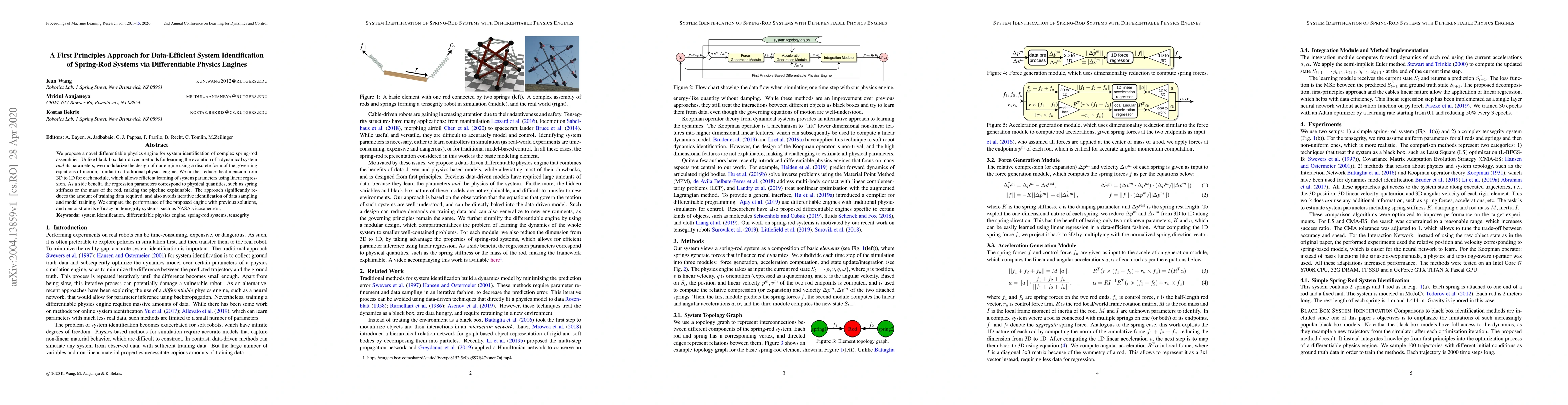 This paper introduces a novel differentiable physics engine for identifying parameters in spring-rod systems with minimal data. It uses a modular, physics-based approach that reduces dimensionality and leverages linear regression, resulting in an efficient, explainable, and data-efficient system identification method.