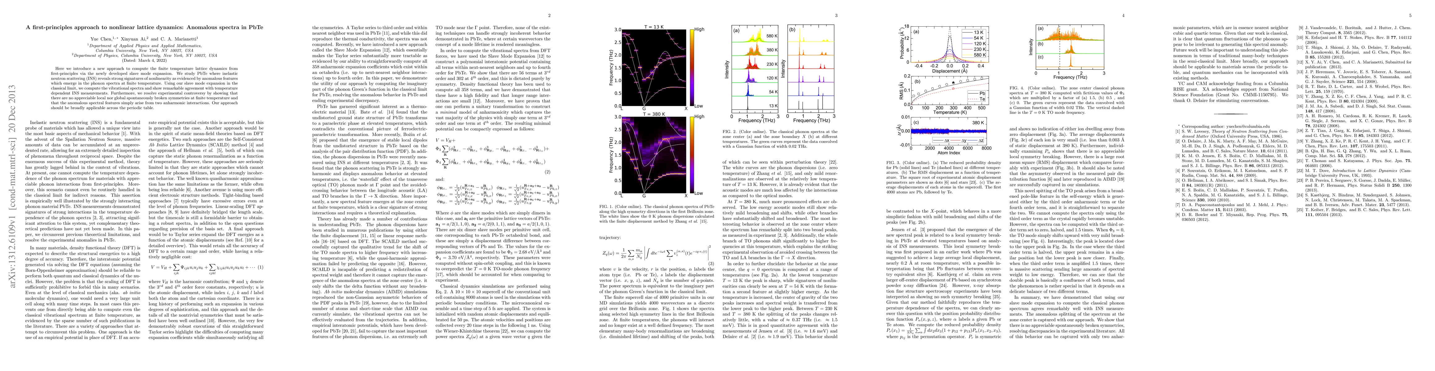 Here we introduce a new approach to compute the finite temperature lattice dynamics from first-principles via the newly developed slave mode expansion. We study PbTe where inelastic neutron scattering (INS) reveals strong signatures of nonlinearity as evidenced by anomalous features which emerge in the phonon spectra at finite temperature. Using our slave mode expansion in the classical limit, we compute the vibrational spectra and show remarkable agreement with temperature dependent INS measurements. Furthermore, we resolve experimental controversy by showing that there are no appreciable local nor global spontaneously broken symmetries at finite temperature and that the anomalous spectral features simply arise from two anharmonic interactions. Our approach should be broadly applicable across the periodic table.