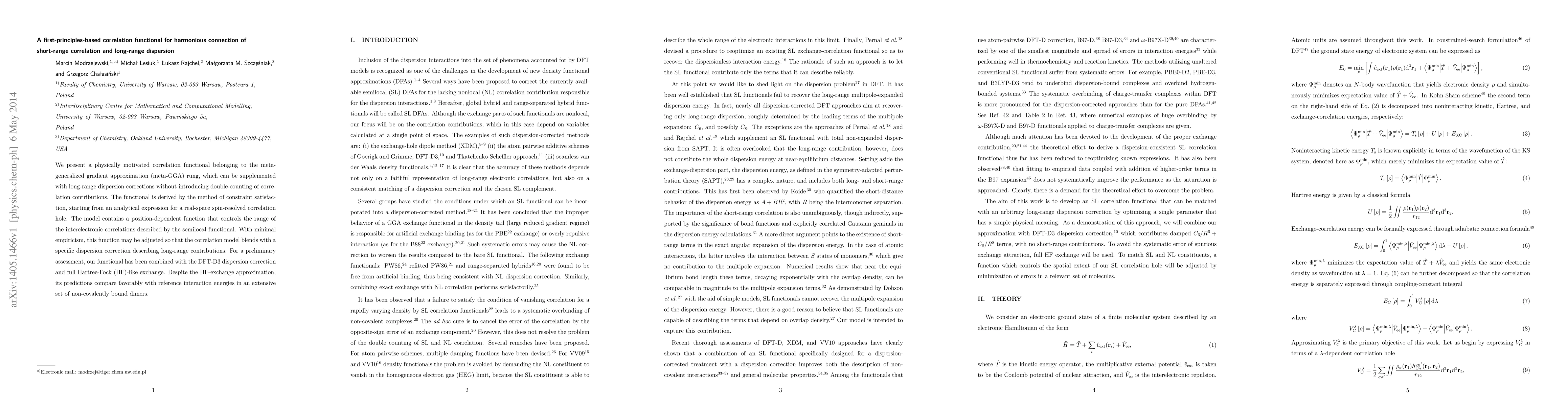 We present a physically motivated correlation functional belonging to the meta-generalized gradient approximation (meta-GGA) rung, which can be supplemented with long-range dispersion corrections without introducing double-counting of correlation contributions. The functional is derived by the method of constraint satisfaction, starting from an analytical expression for a real-space spin-resolved correlation hole. The model contains a position-dependent function that controls the range of the interelectronic correlations described by the semilocal functional. With minimal empiricism, this function may be adjusted so that the correlation model blends with a specific dispersion correction describing long-range contributions. For a preliminary assessment, our functional has been combined with the DFT-D3 dispersion correction and full Hartree-Fock (HF)-like exchange. Despite the HF-exchange approximation, its predictions compare favorably with reference interaction energies in an extensive set of non-covalently bound dimers.
