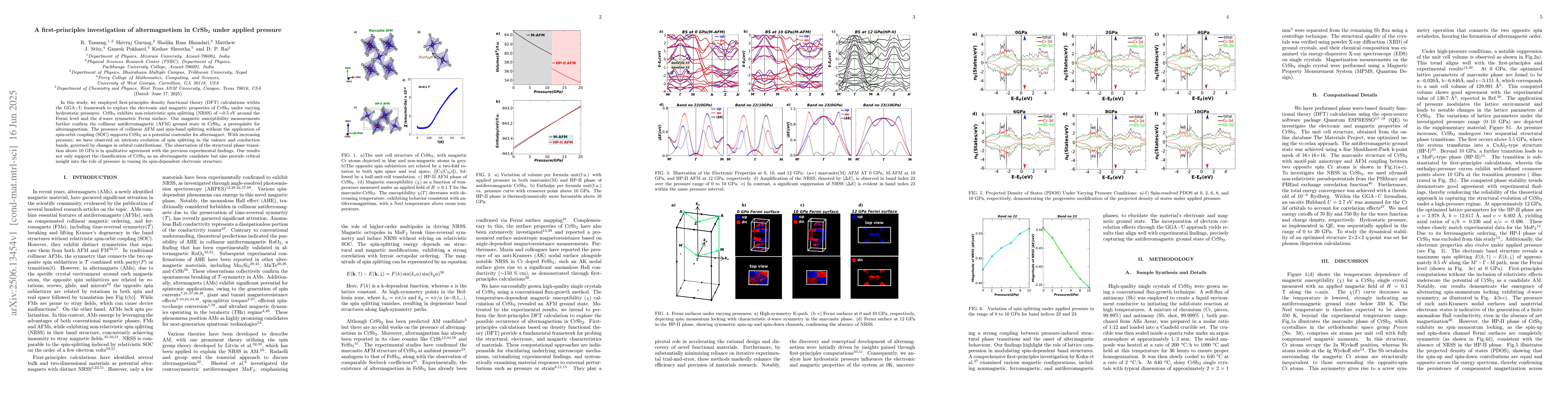 In this study, we employed first-principles density functional theory (DFT) calculations within the GGA+U framework to explore the electronic and magnetic properties of CrSb2 under varying hydrostatic pressures. CrSb2 exhibits non-relativistic spin splitting (NRSS) of around 0.5 eV around the Fermi level and the d-wave symmetric Fermi surface. Our magnetic susceptibility measurements further confirm the collinear antiferromagnetic (AFM) ground state in CrSb2 , a prerequisite for altermagnetism. The presence of collinear AFM and spin-band splitting without the application of spin-orbit coupling (SOC) supports CrSb2 as a potential contender for altermagnet. With increasing pressure, we have observed an intricate evolution of spin splitting in the valence and conduction bands, governed by changes in orbital contributions. The observation of the structural phase transition above 10 GPa is in qualitative agreement with the previous experimental findings. Our results not only support the classification of CrSb2 as an altermagnetic candidate but also provide critical insight into the role of pressure in tuning its spin-dependent electronic structure.