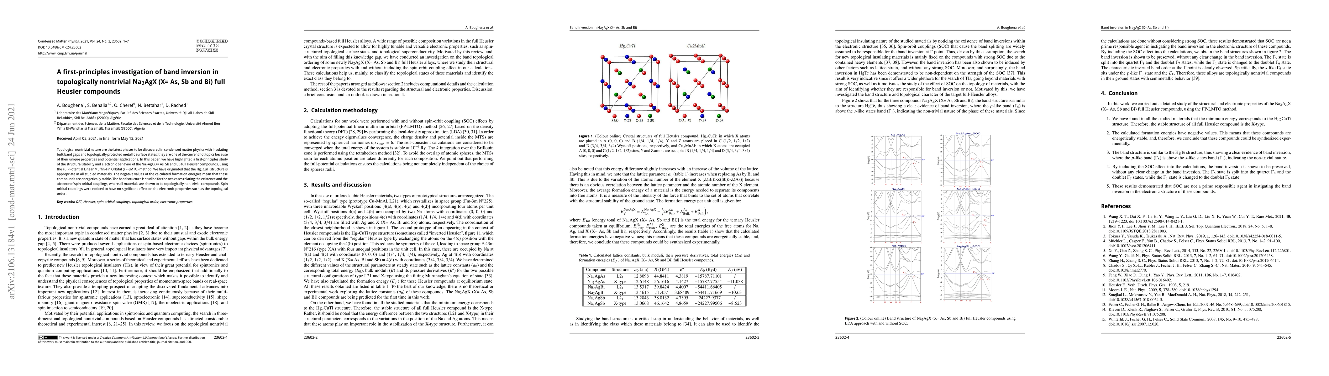 This paper investigates the structural stability and electronic properties of Na2AgX (X= As, Sb, Bi) full Heusler compounds using first-principles calculations. The study reveals that these compounds are energetically stable and exhibit topologically nontrivial band inversion, with spin-orbital coupling having minimal impact on their topological order.